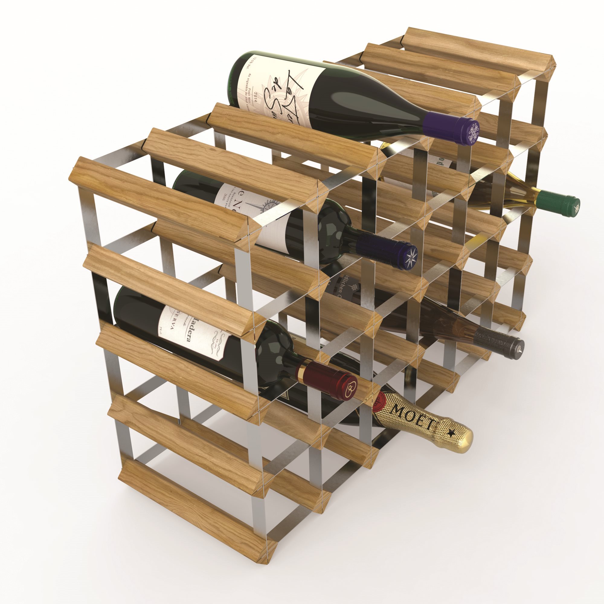 Стелаж за 30 бутилки вино, от борова дървесина, цвят светъл дъб, марка RTA с размери 52 x 23 x 53 см. когато е сглобен.