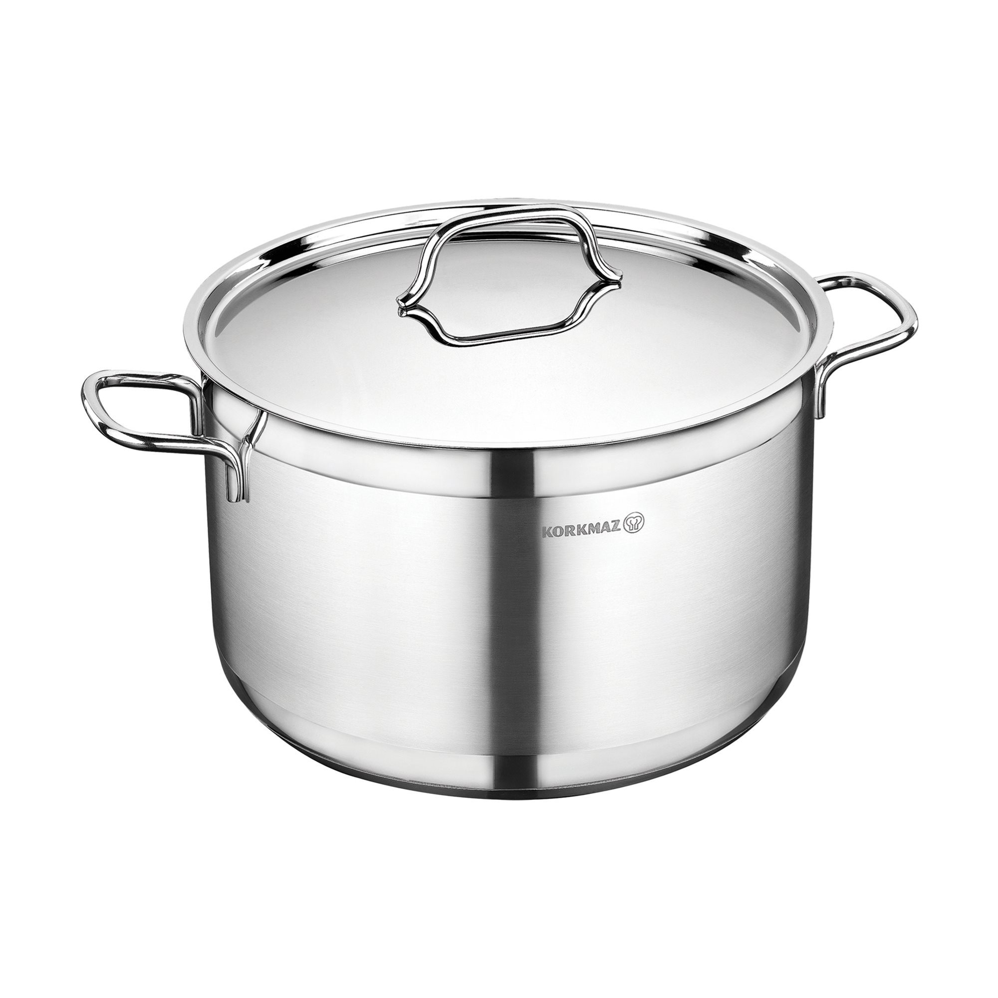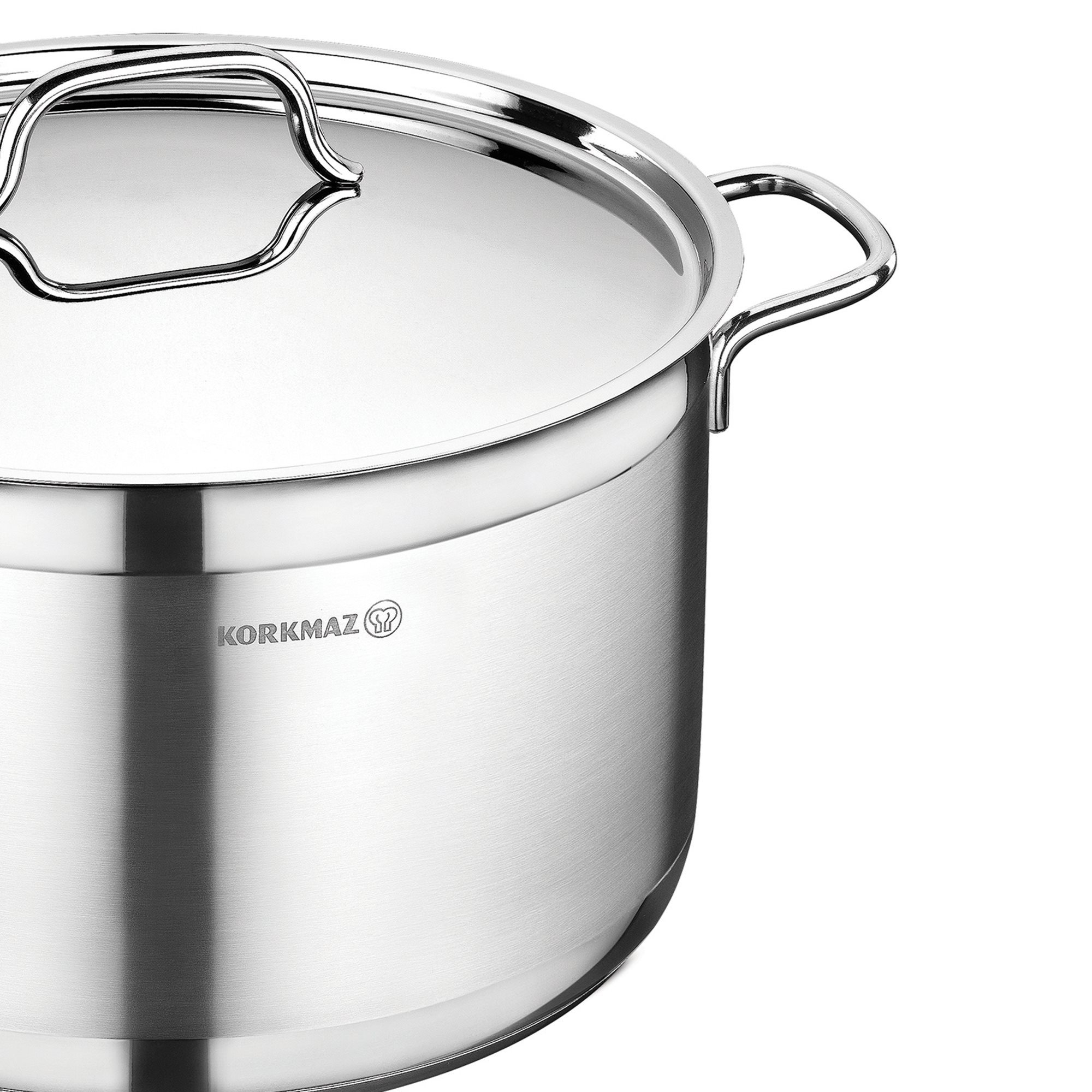 Тенджера с капак, диаметър 26 см, вместимост 6,8 л, изработена от неръждаема стомана 18/10 Cr-Ni (хром-никел), марка Korkmaz