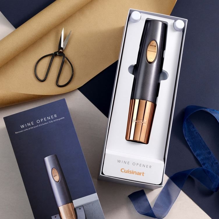 Бързо отворете запушалките за бутилки за вино с електрически тирбушон на марката Cuisinart .
