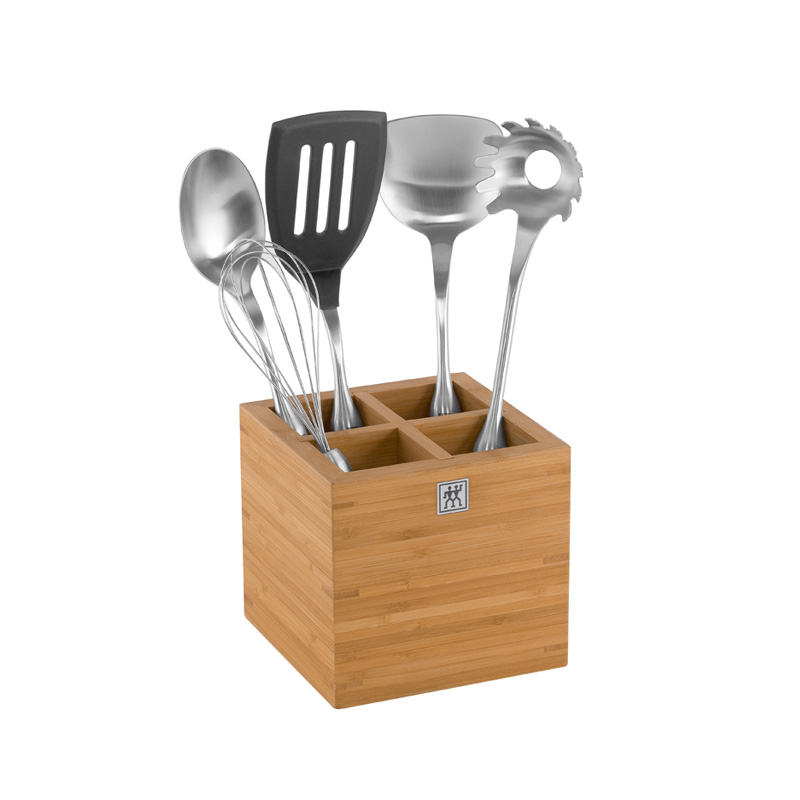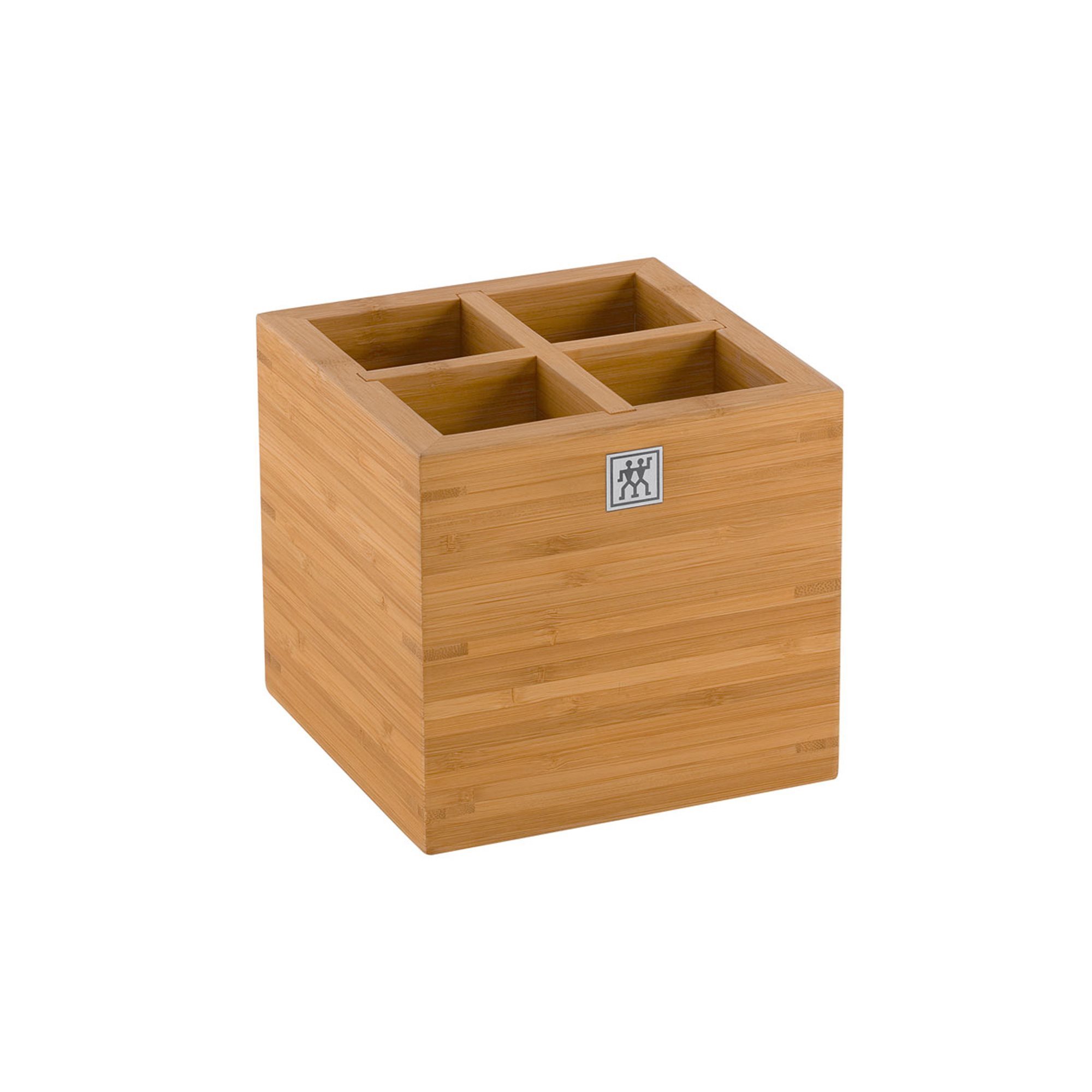 Компартимизирана поставка за кухненски прибори, марка Zwilling, с размер 16 х 16 см, от бамбуково дърво.