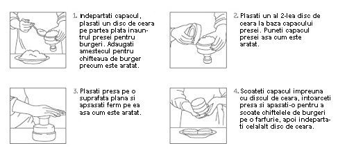 Друго предимство е простотата на системата за образуване на бургери, като е лесна за използване. Поставете диск от восък в устройството, след това добавете мляното месо, подправено на вкус, смесено с варени и нарязани зеленчуци, според вашите предпочитания, и поставете втория диск от восък върху него. Поставете капака над тях и натиснете.