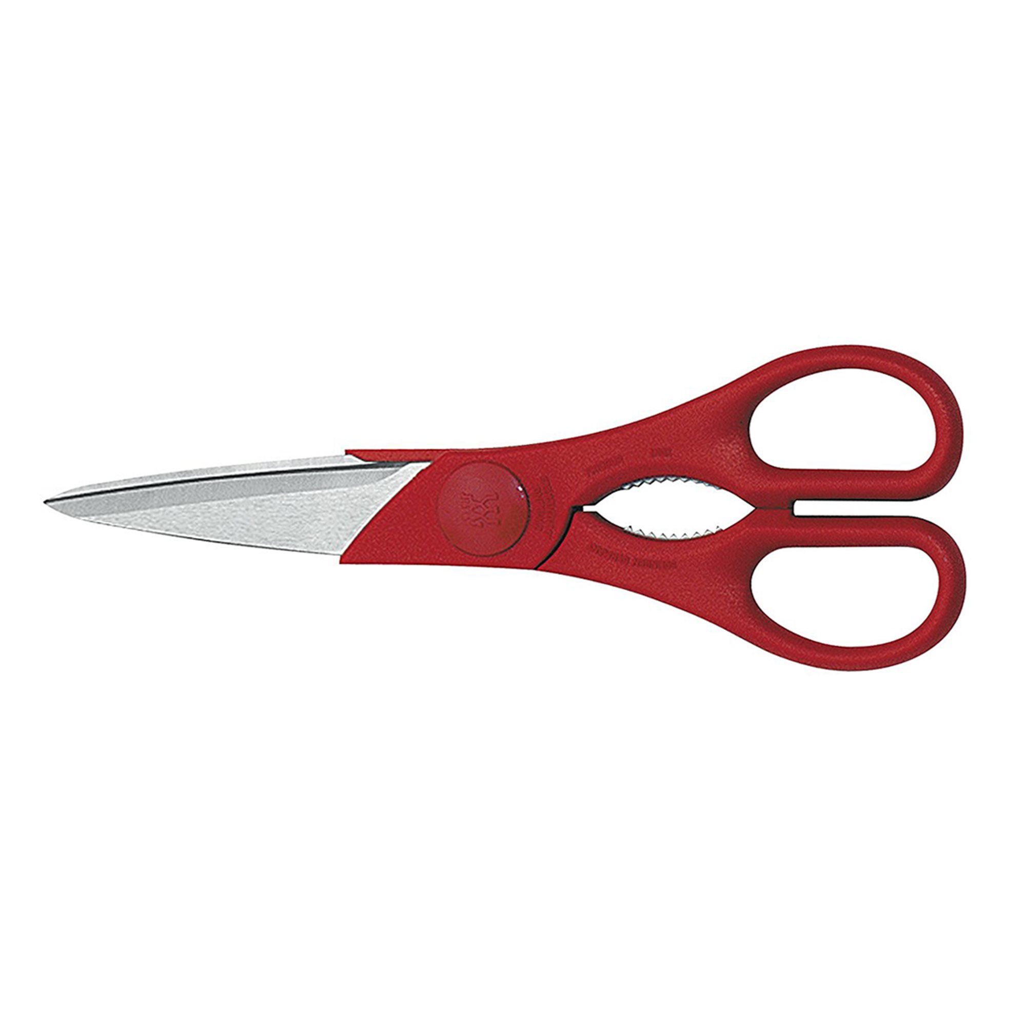 Многофункционална кухненска ножица, марка Zwilling, дължина 20 см, с остриета от неръждаема стомана, които са устойчиви на корозия и ударозащитни.