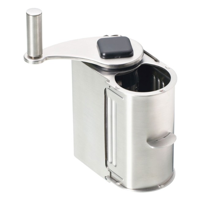 Снабдена с въртяща се дръжка и остриета от неръждаема стомана, това ренде е идеално за настъргване на твърди сирена, както и шоколад, ядки и дори сушен кокос. С вградено отделение за съхранение, този продукт е лесен за управление и перфектен за използване директно на масата.