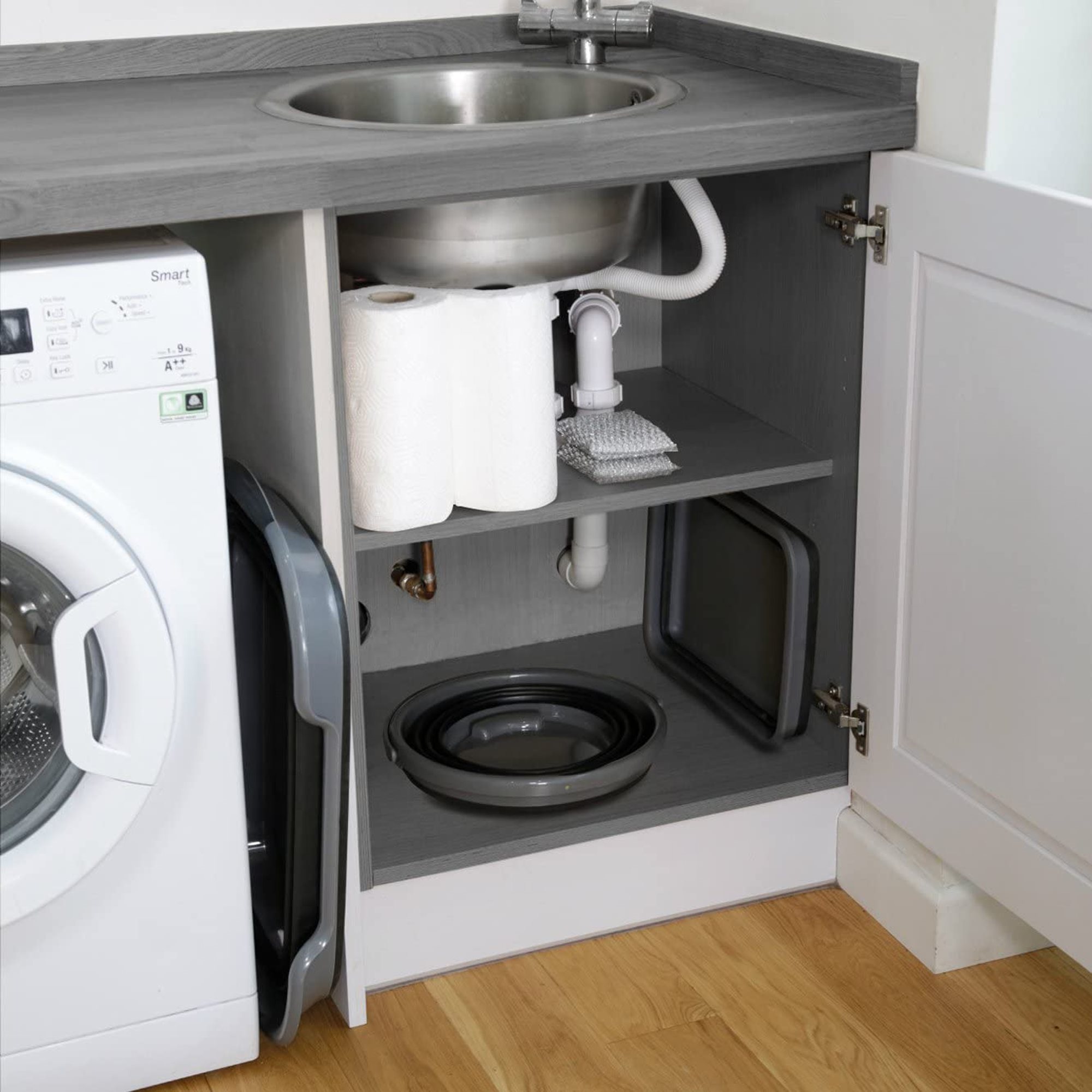 С леко натискане сгъваемата мивка е готова за употреба. Сгъваемите части са изработени от издръжлив, гъвкав силикон, за лесно сгъване, а дръжката и полипропиленова основа му придават определена твърдост и стабилност. Основата е снабдена с малки неплъзгащи се крачета.