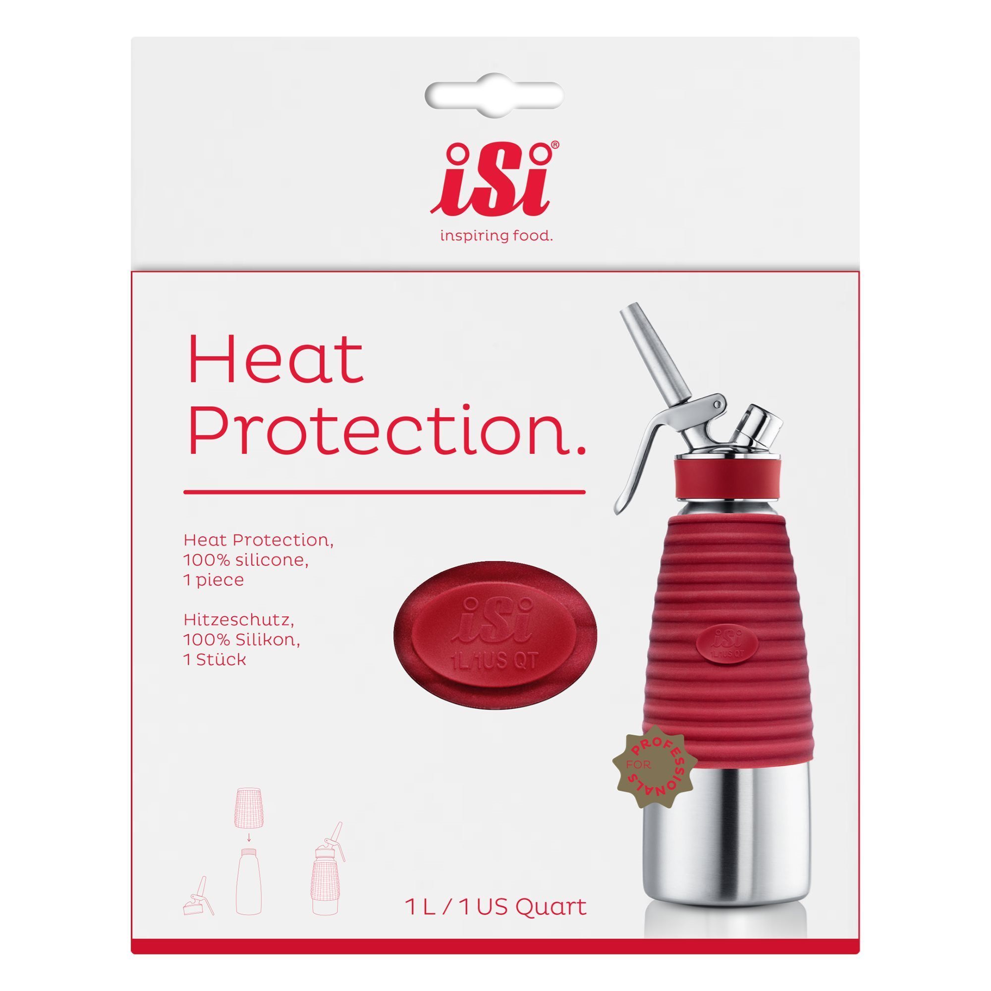 Устройството за термозащита, изработено от силикон, съвместимо със сифона iSi Gourmet Whip с вместимост 1 l, предпазва ръцете ви, когато докоснете контейнера от неръждаема стомана по време на горещи приложения.
