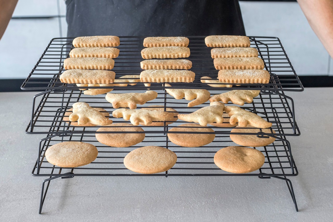 3-етажна хладилна поставка с размери 40 х 25 см, с незалепващо покритие - марка Kitchen CraftМожете да поставяте храни върху тази поставка, за да се охладят. Незалепващото покритие предпазва храната от залепване. Тази поставка може да се използва и за горещи съдове за готвене.Поставката може да се мие в съдомиялна машина.Размери: 40 х 25 х 22 смМатериал: стомана.