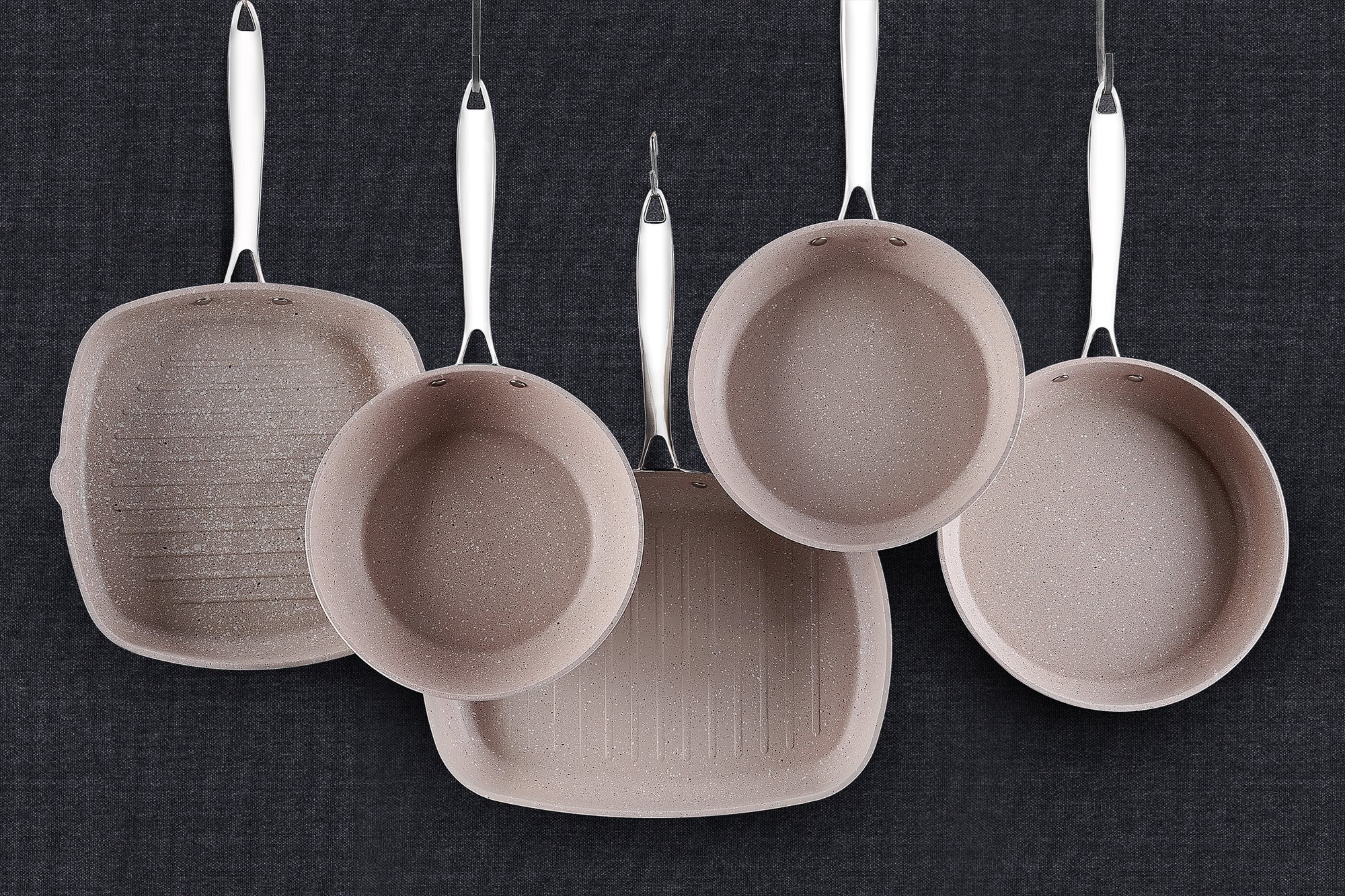 Съдовете за готвене на Granita са изработени от рециклирани и рециклируеми материали, използвайки екологична технология, с незалепващо и устойчиво на надраскване PTFE покритие от вътрешната страна и външен силиконов слой, който е устойчив на високи температури.