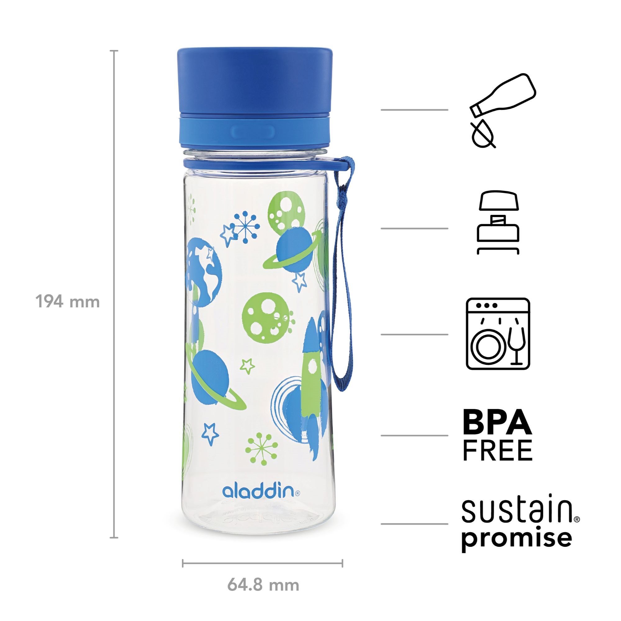 От производството до дизайна и предназначението бутилката с вода е предназначена за проста хидратация, която е едновременно активна, но и екологична, едновременно. Това се дължи на факта, че Аладин прилага устойчив подход и придава същото значение както на начина, по който се произвеждат продуктите, така и на начина, по който се използват, за да бъде напълно безопасен за здравето, но и за природата.