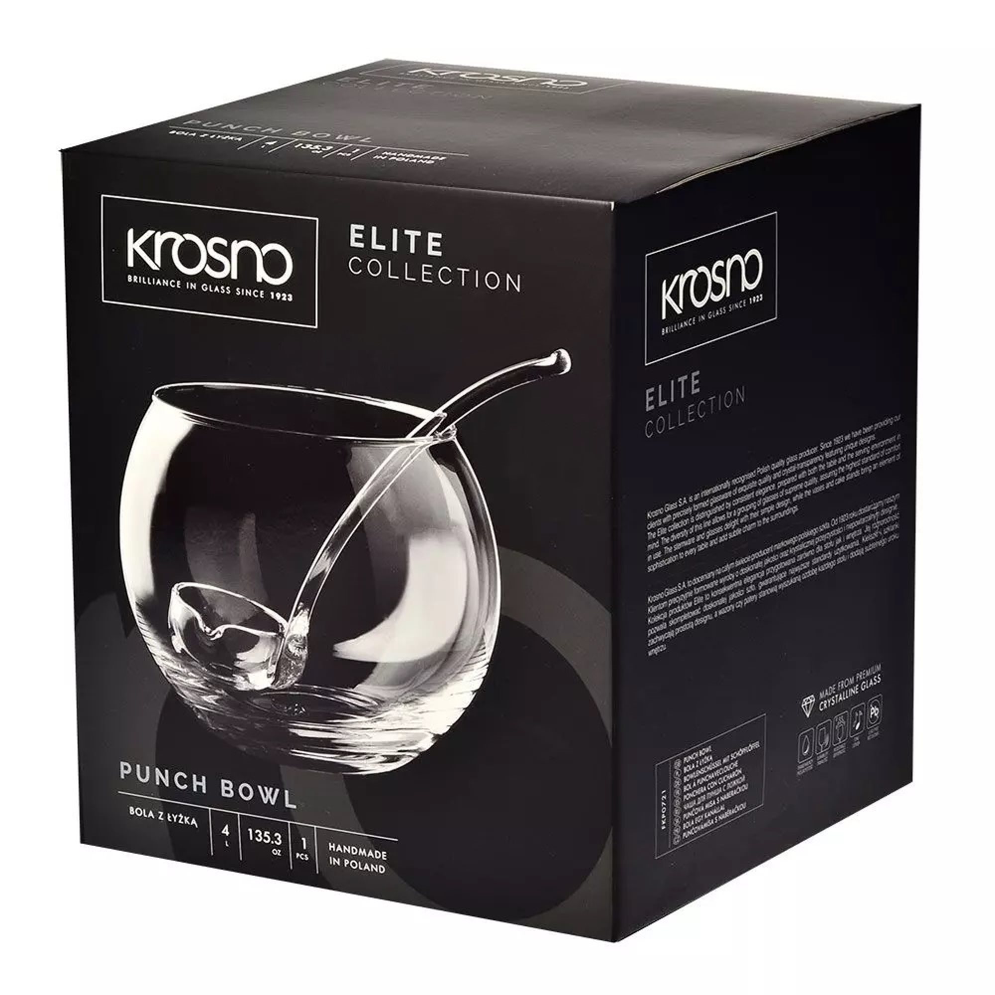 Всяка напитка, от домашен компот до изискан punch, ще се превърне в елегантен елемент, с купата Krosno! Купата е перфектната идея за подарък за парти или друго събитие с приятели. Функционалната структура с форма на цев, гладкият ръб и перфектно прозрачното стъкло ще изглеждат страхотно на всяка маса. Включеният черпак улеснява изливането на напитката в чашите за пиене - без да се разлива съдържанието! И двата елемента са произведени по традиционния ръчен метод, което ги прави уникални във всяко едно отношение. Кристалното стъкло ви позволява да наблюдавате съдържанието, като е изключително устойчиво на притъпяване или повреда.