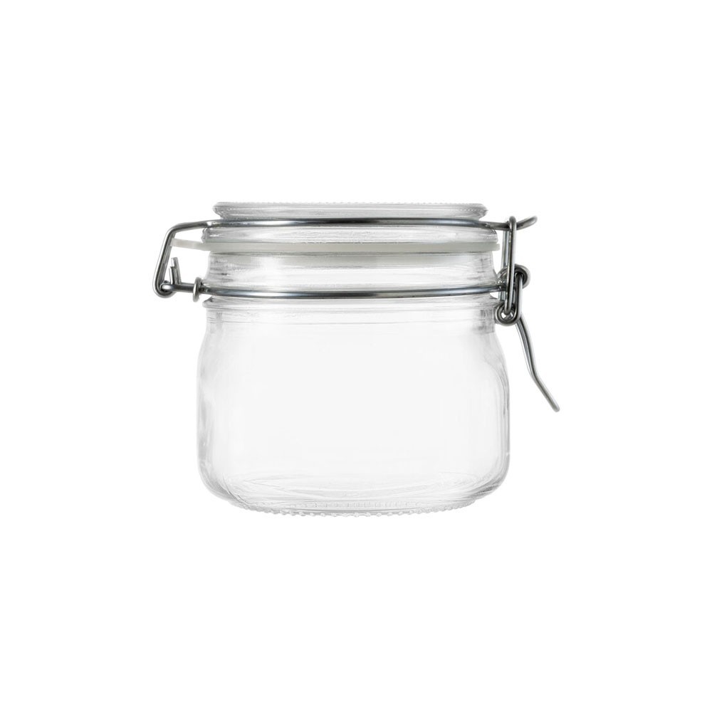 Херметически затворен буркан със скоба, произведен от Borgonovo, произведен в Италия, от висококачествено допълнително прозрачно стъкло.