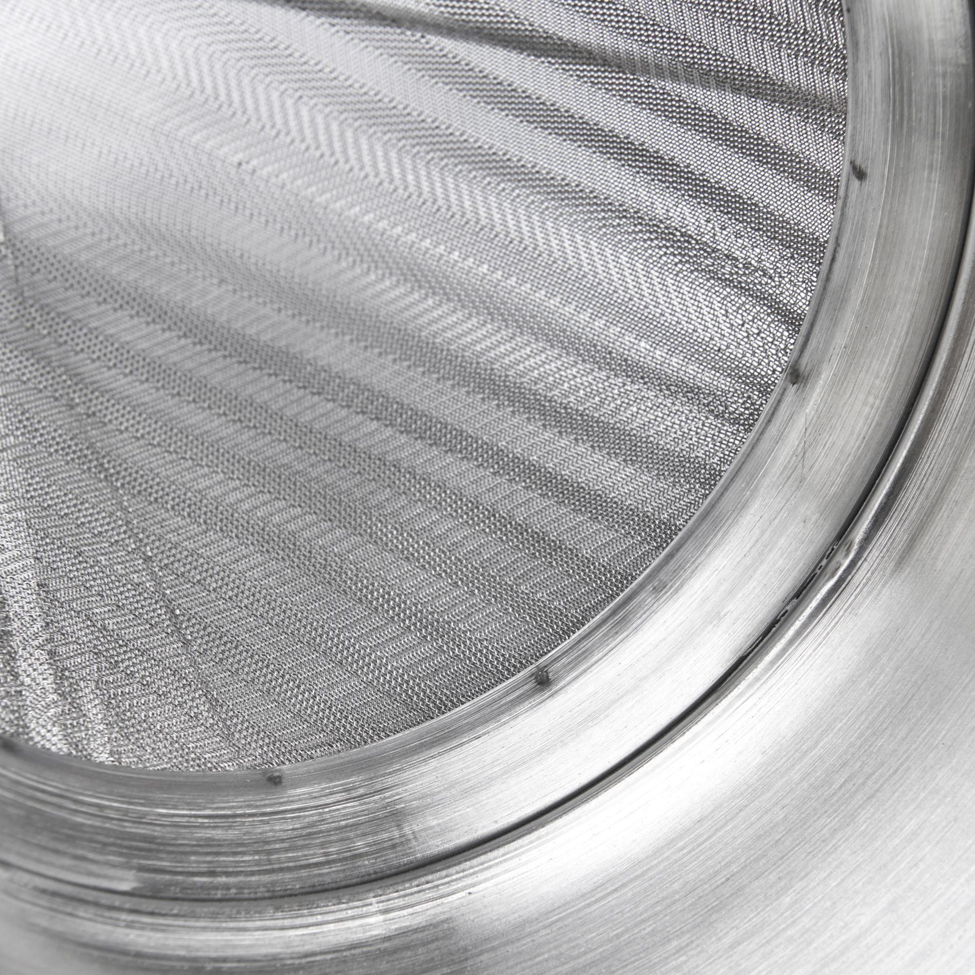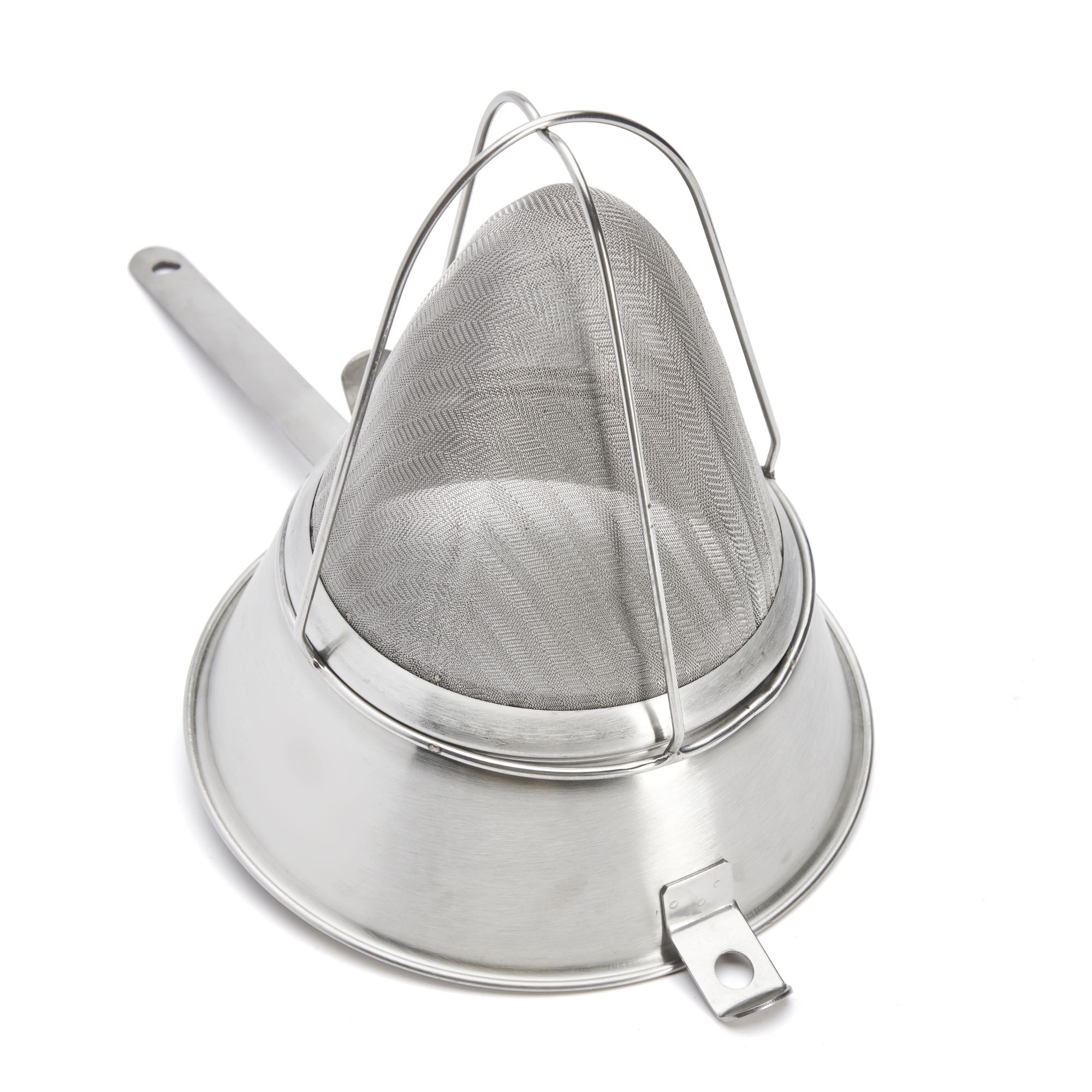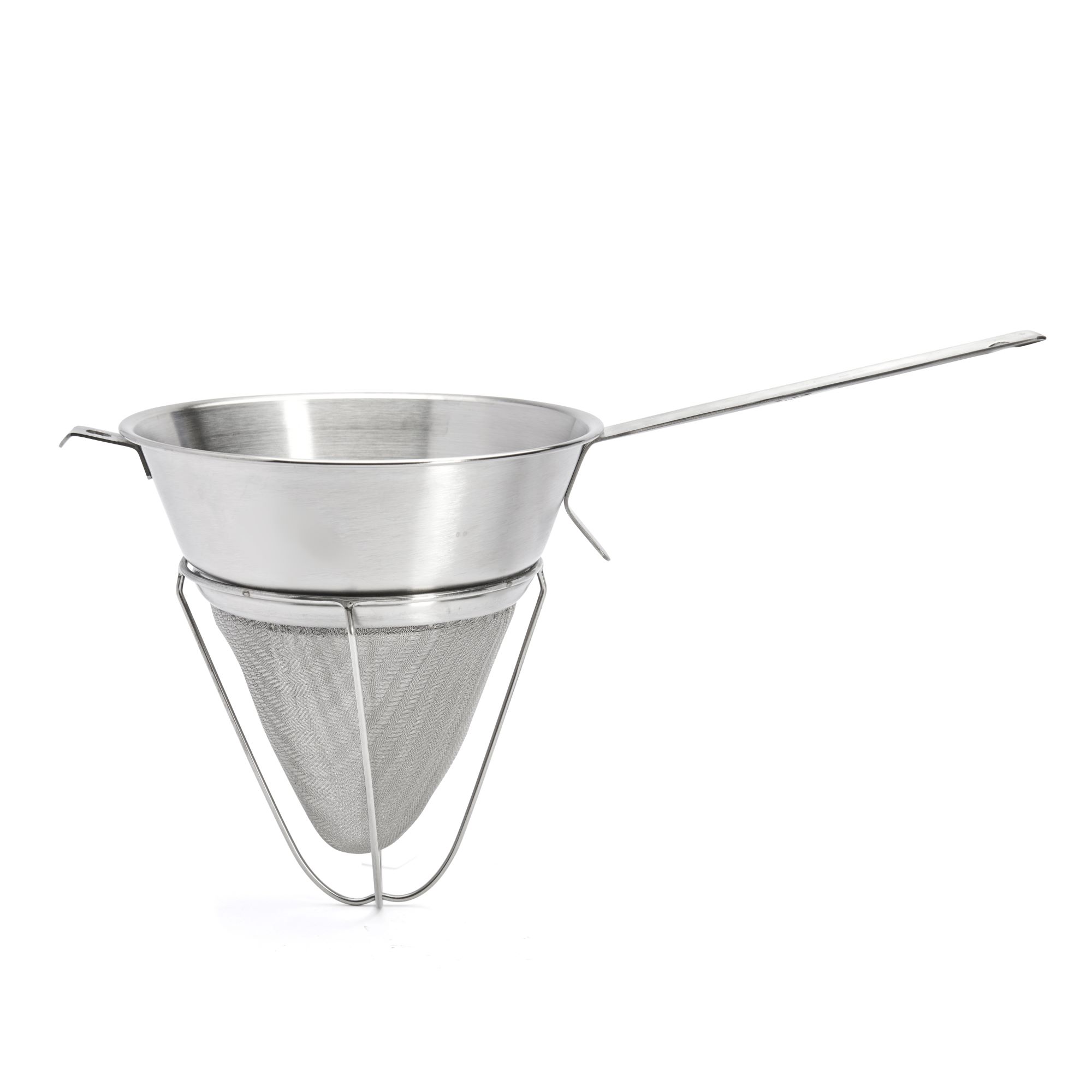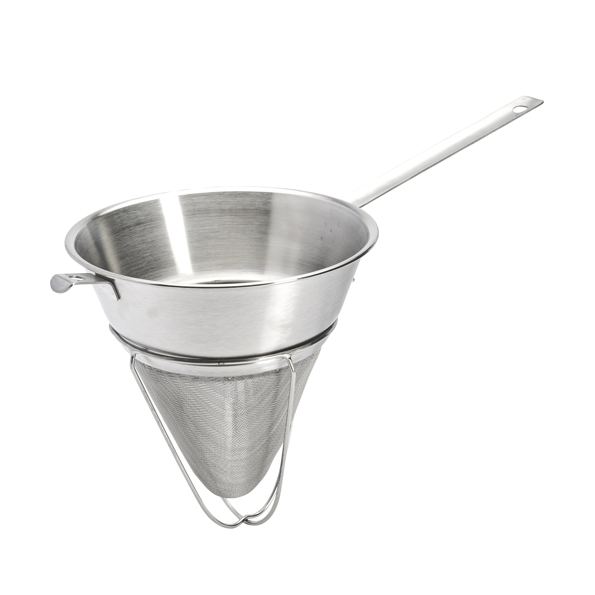 Конична цедка с двойно фино сито, марка de Buyer. Изработен от неръждаема стомана, той е идеален за приготвяне на сладкарски кремове, желета или сорбета.