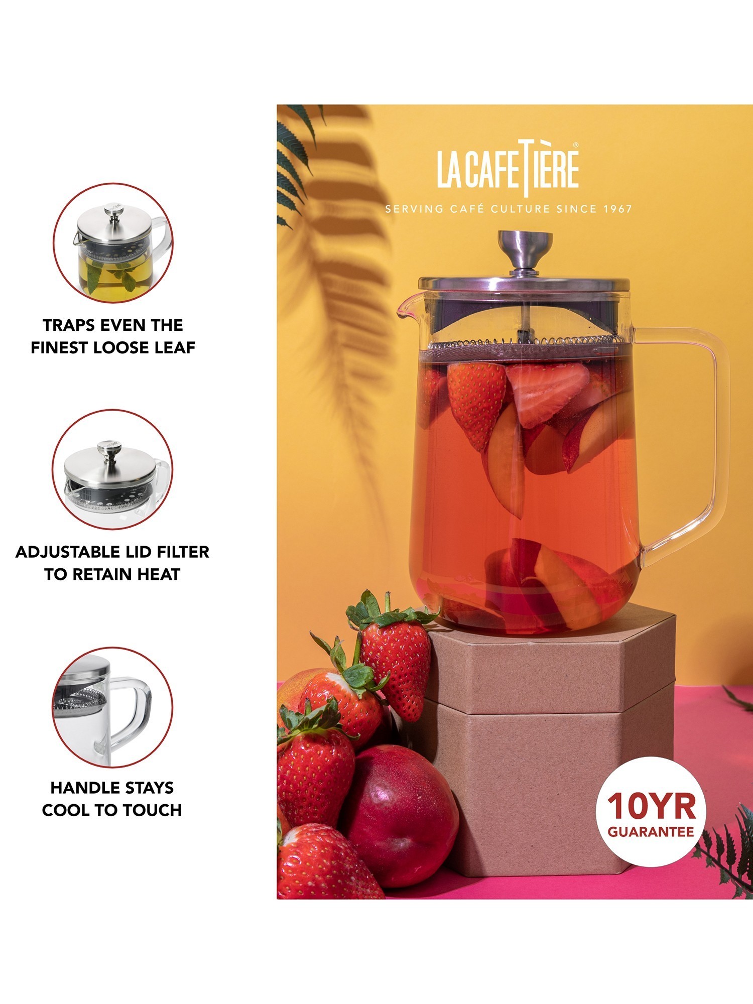 Чайник Loose Leaf , изработен от боросиликатно стъкло, с прес филтър от неръждаема стомана, марка La Cafetière.