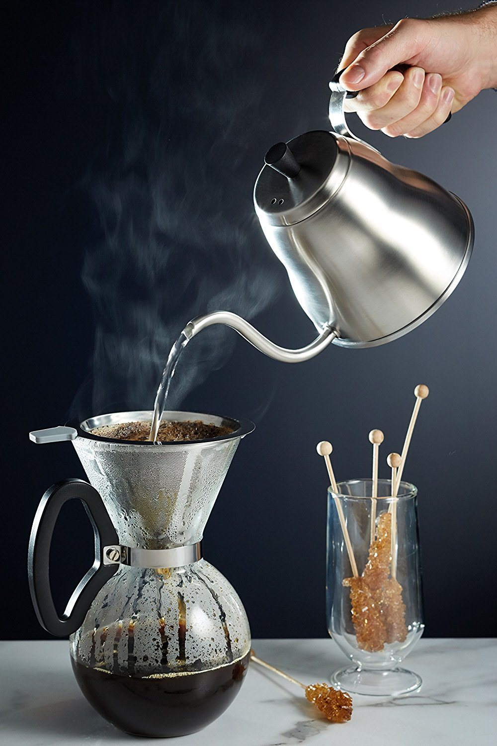 Вдъхновен от класически японски чайници, продуктът има дълго изливане пространство за бавно и прецизно изливане.