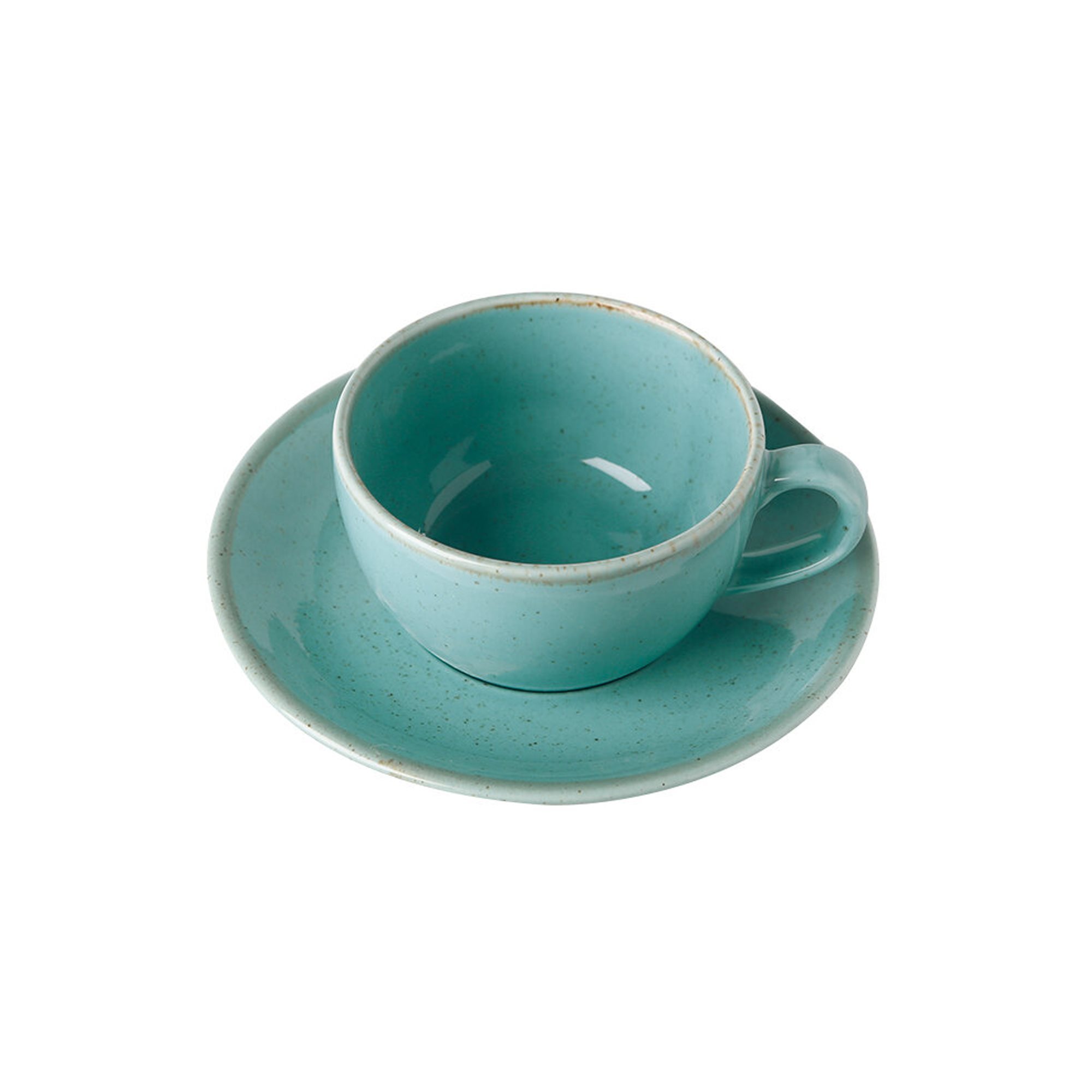 Комплект чаши и чинийки за кафе, произведени от Porland, с капацитет 250 мл, изработени от порцелан.
