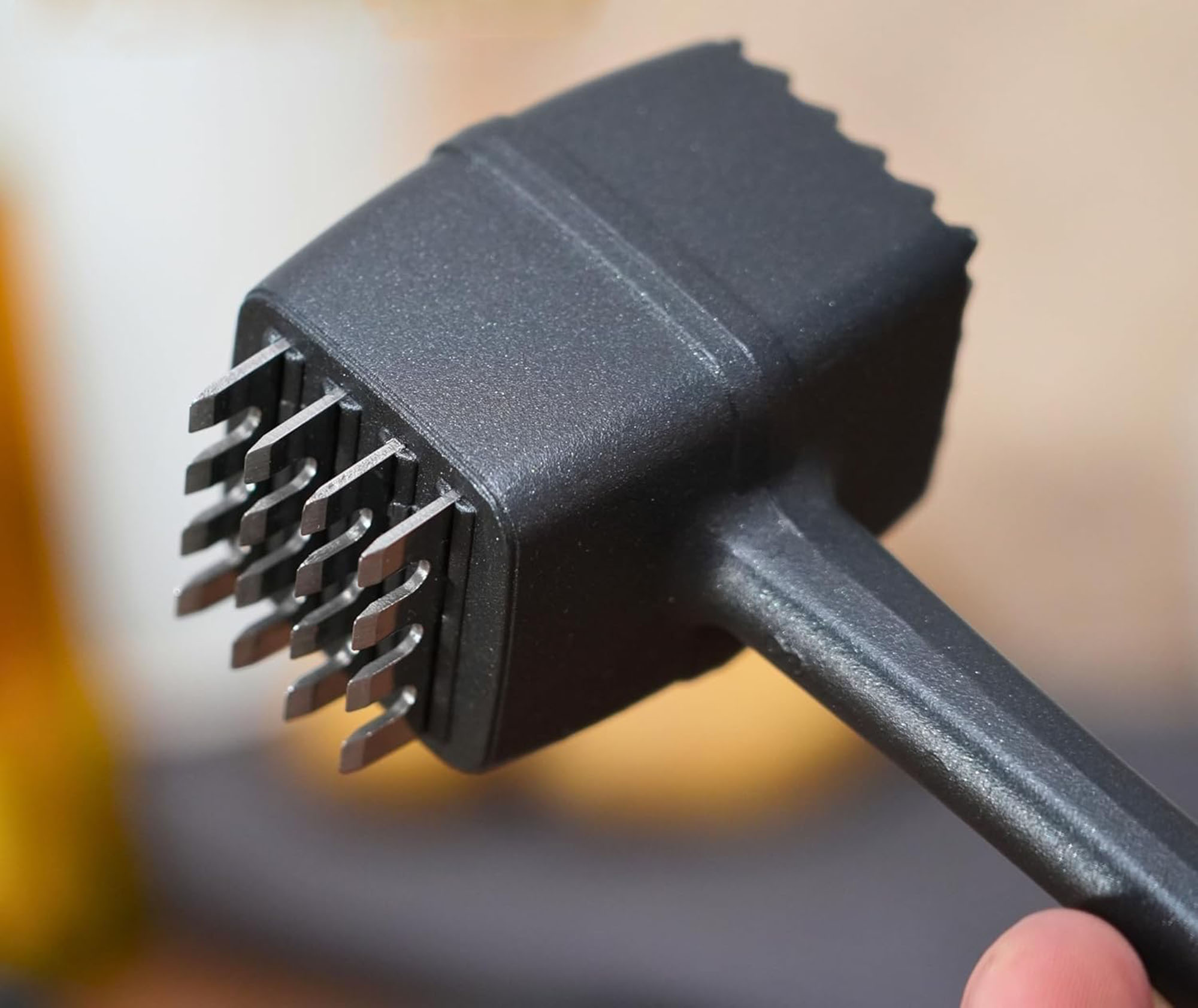 Оборудван с 2 различни повърхности за омекотяване на месото : едната груба страна за омекотяване на месото и включване на билки и една с шипове.