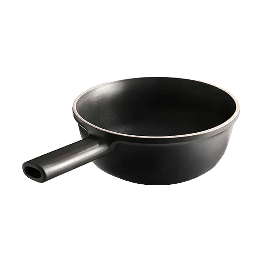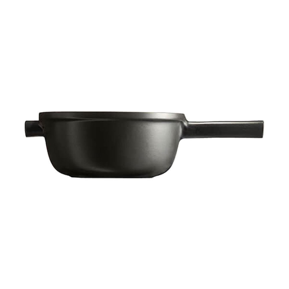 Матовият черен емайл , който покрива керамиката, не само й придава елегантен външен вид, но е и изключително полезен, като успешно издържа на потенциални надрасквания, които могат да възникнат след използване на метални прибори върху повърхността на съдовете за готвене, които са покрити с чувствителен материал като керамика.