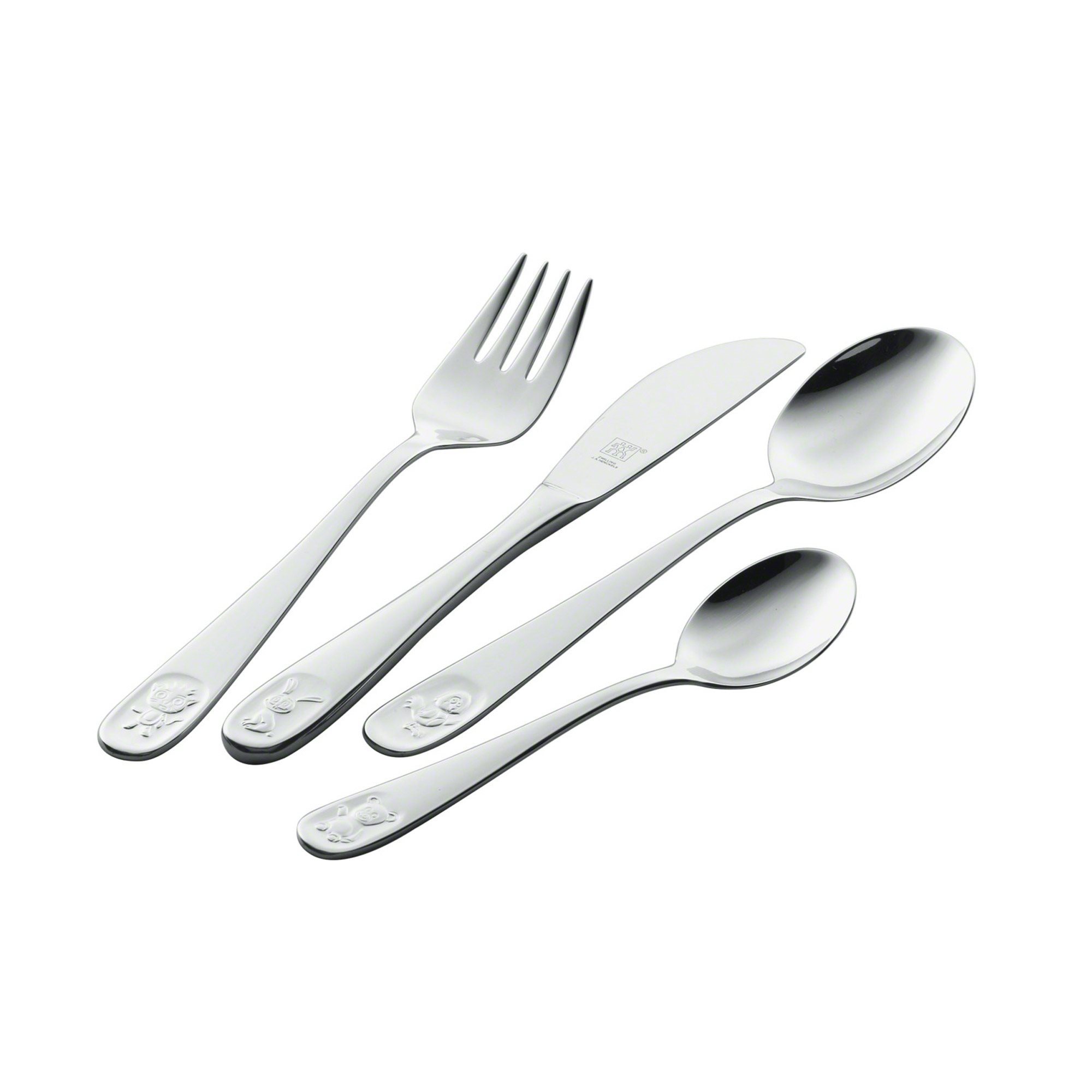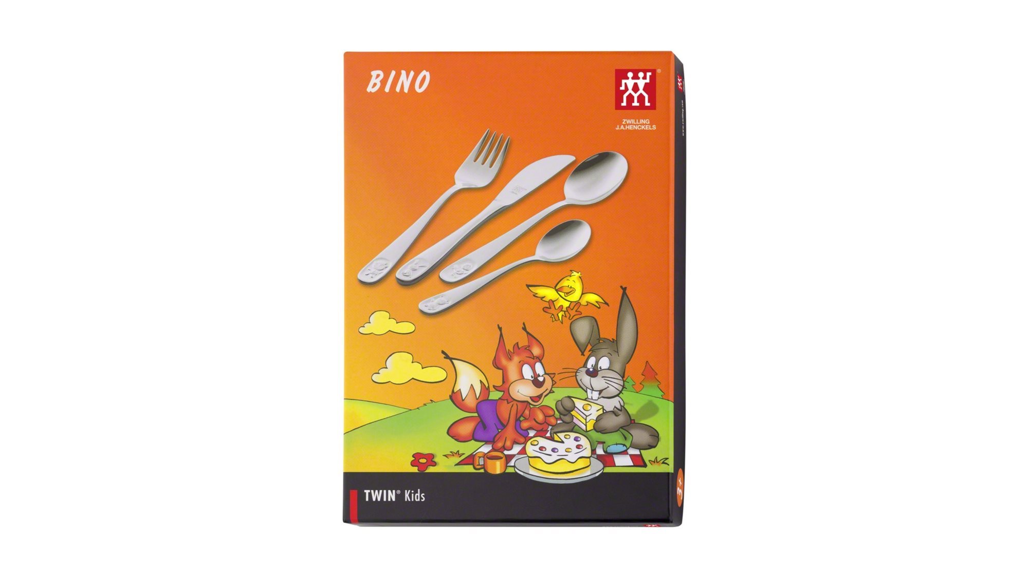 Комплект детски прибори "Бино", марка Zwilling , състоящ се от супена лъжица, чаена лъжичка, вилица и нож. Този комплект разказва историята на заек и лисица, които обичат да ядат. 4-те животни, гравирани върху дръжки, придават на всеки прибор уникален вид и вдъхновяват детското въображение.