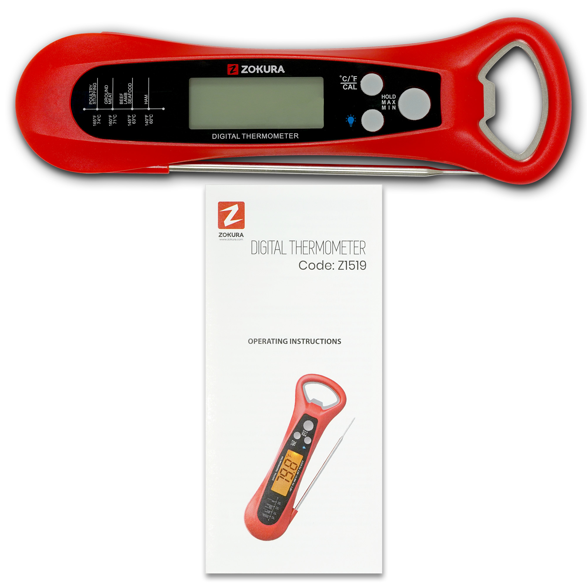 Дигитален кухненски термометър с вграден отварач за бутилки, произведен от Zokura.