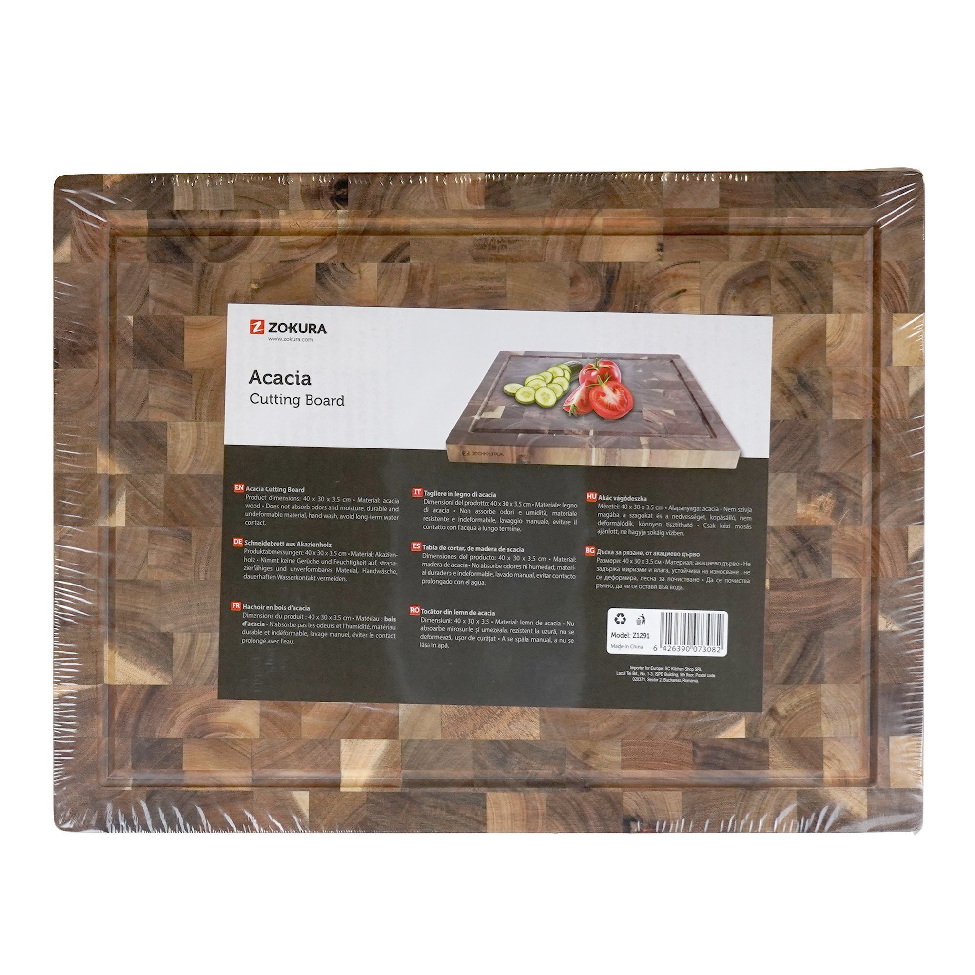 Дъска за рязане, изработена от акациево дърво, материал, признат със своята устойчивост и издръжливост, марка Zokura