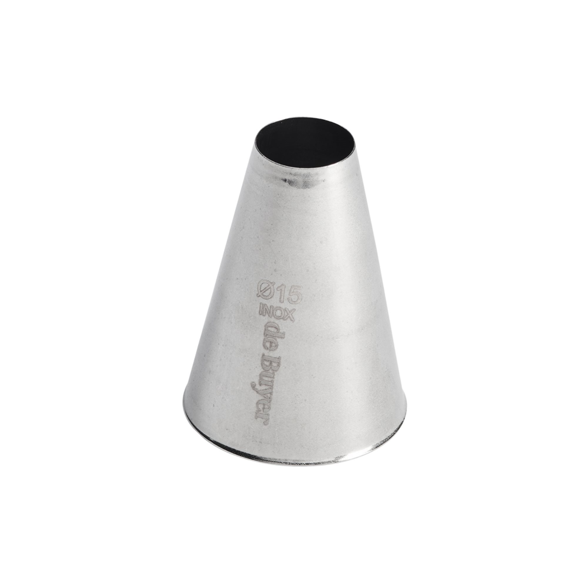 Дюза за декориране от неръждаема стомана с прав ръб, произведена от de Buyer, с горен диаметър 15 mm.
