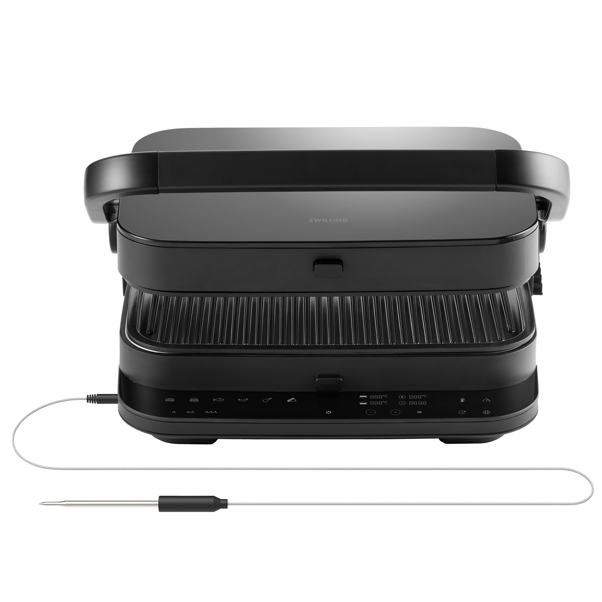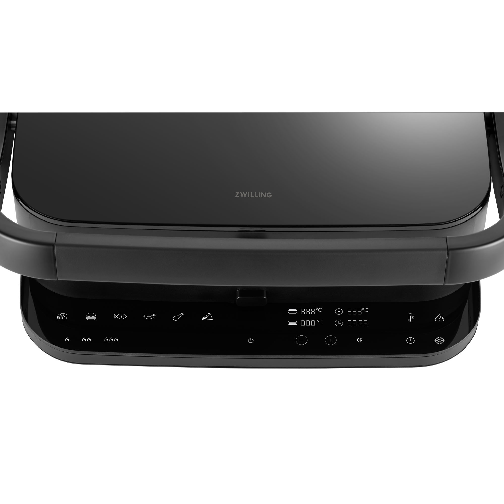 Електрическата скара 2 в 1 "Enfinigy", произведена от Zwilling, с мощност 1850 W, се отличава с модерен дизайн и плочи с керамично покритие , които осигуряват равномерно готвене.