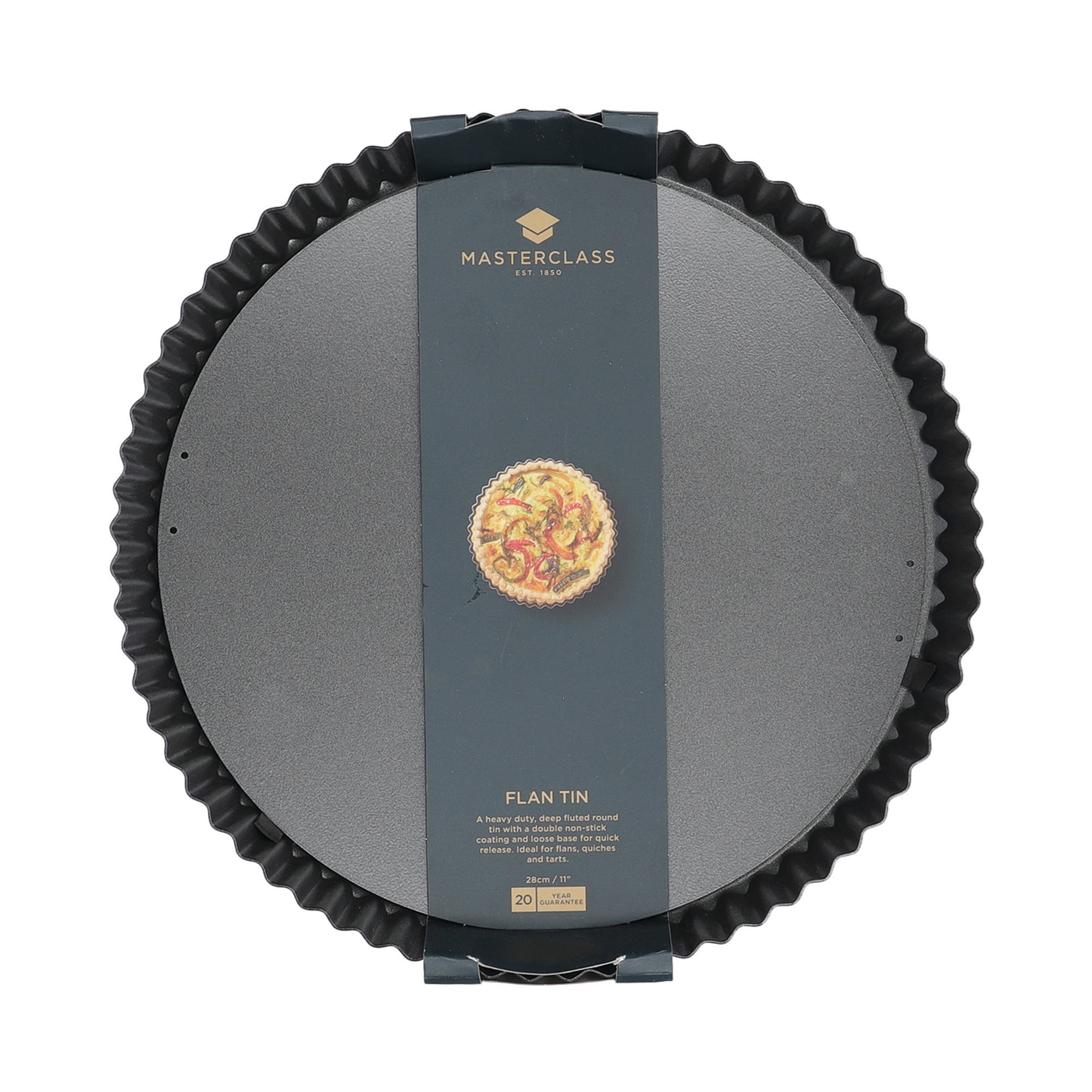 От здрава въглеродна стомана, тавата е снабдена с незалепващ слой, който позволява равномерно изпичане, без залепване и лесно последващо отделяне на приготвеното. Кръглата тава с набраздени ръбове и разглобяема основа, с диаметър 28 см е добре „обучена“ за интензивна употреба, отговаряйки успешно на всичките ви предизвикателства в кухнята.