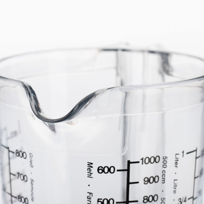 Мерителната кана "Gerda", марка Westmark, 1000 мл (с измервателна скала на немски, английски, френски, холандски, испански, италиански) и основата от противоплъзгащ материал.