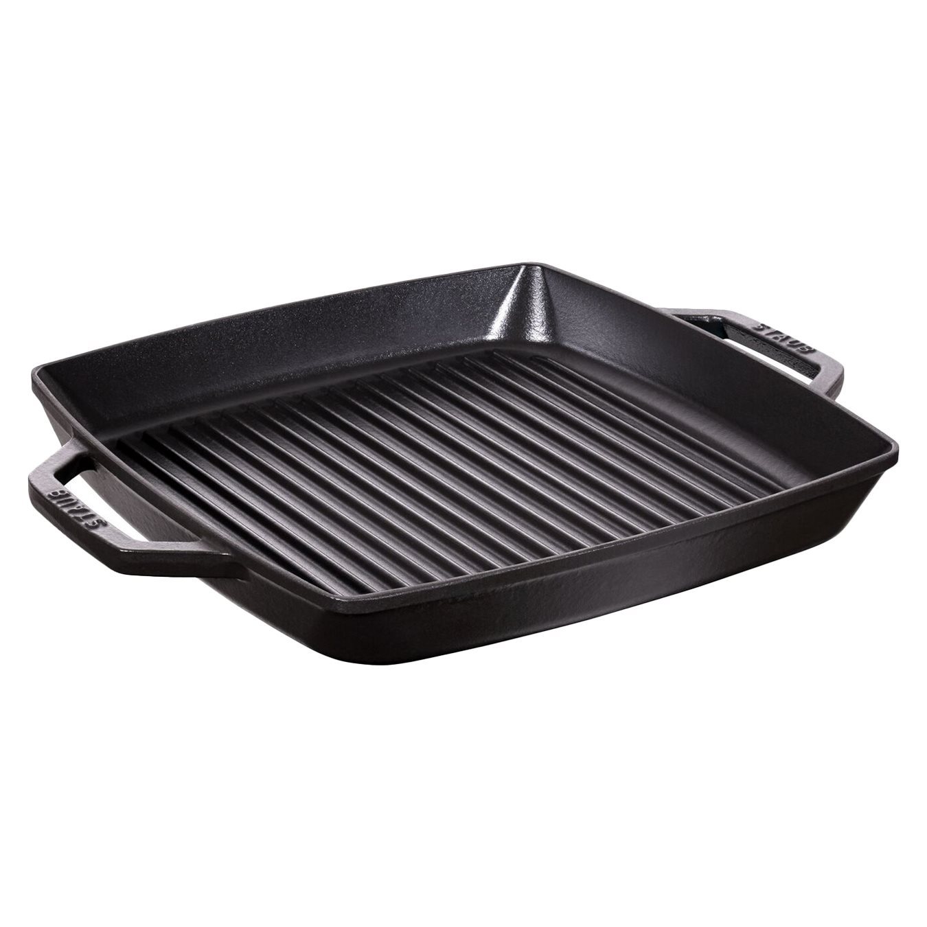 Грил тиган, с квадратна форма, марка Staub, изработена от чугун, с размери 33 х 33 см.