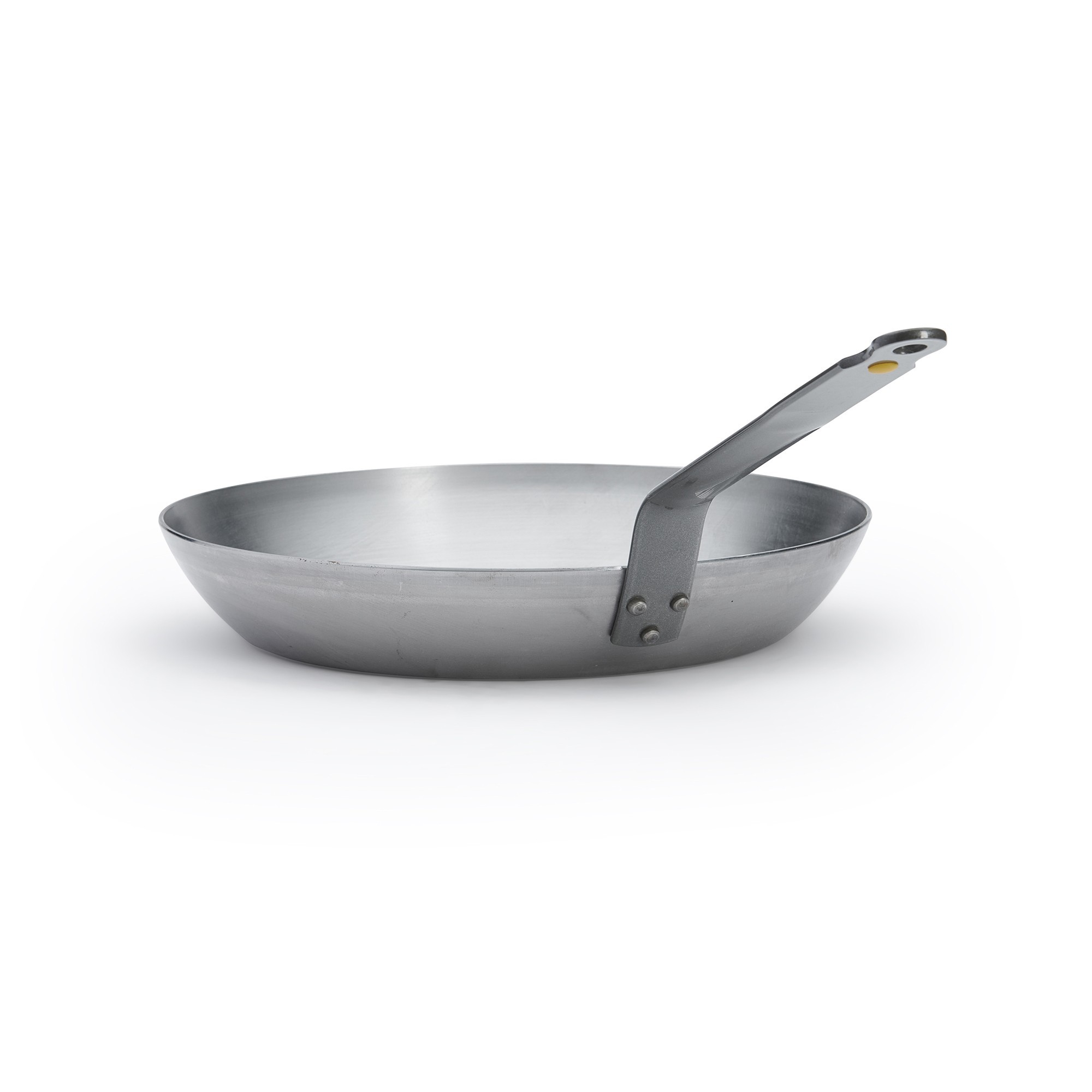 Професионален тиган, de Buyer марка, диаметър 32 см, височина 4,5 см, изработен от 2,5-мм дебела стомана, която не се деформира.
