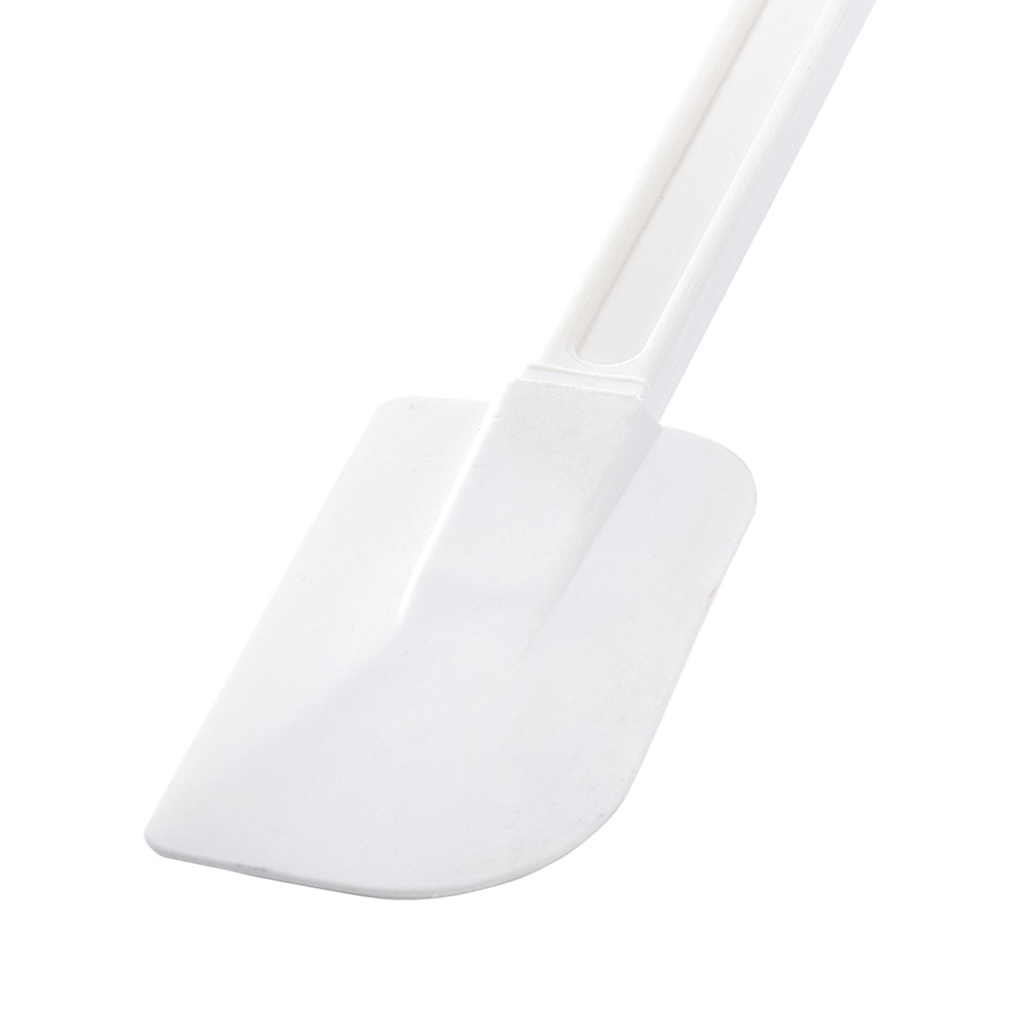 Шпатулата има заоблен ъгъл и прав ъгъл за ефективно изстъргване на всички видове съдове, без да ги поврежда.