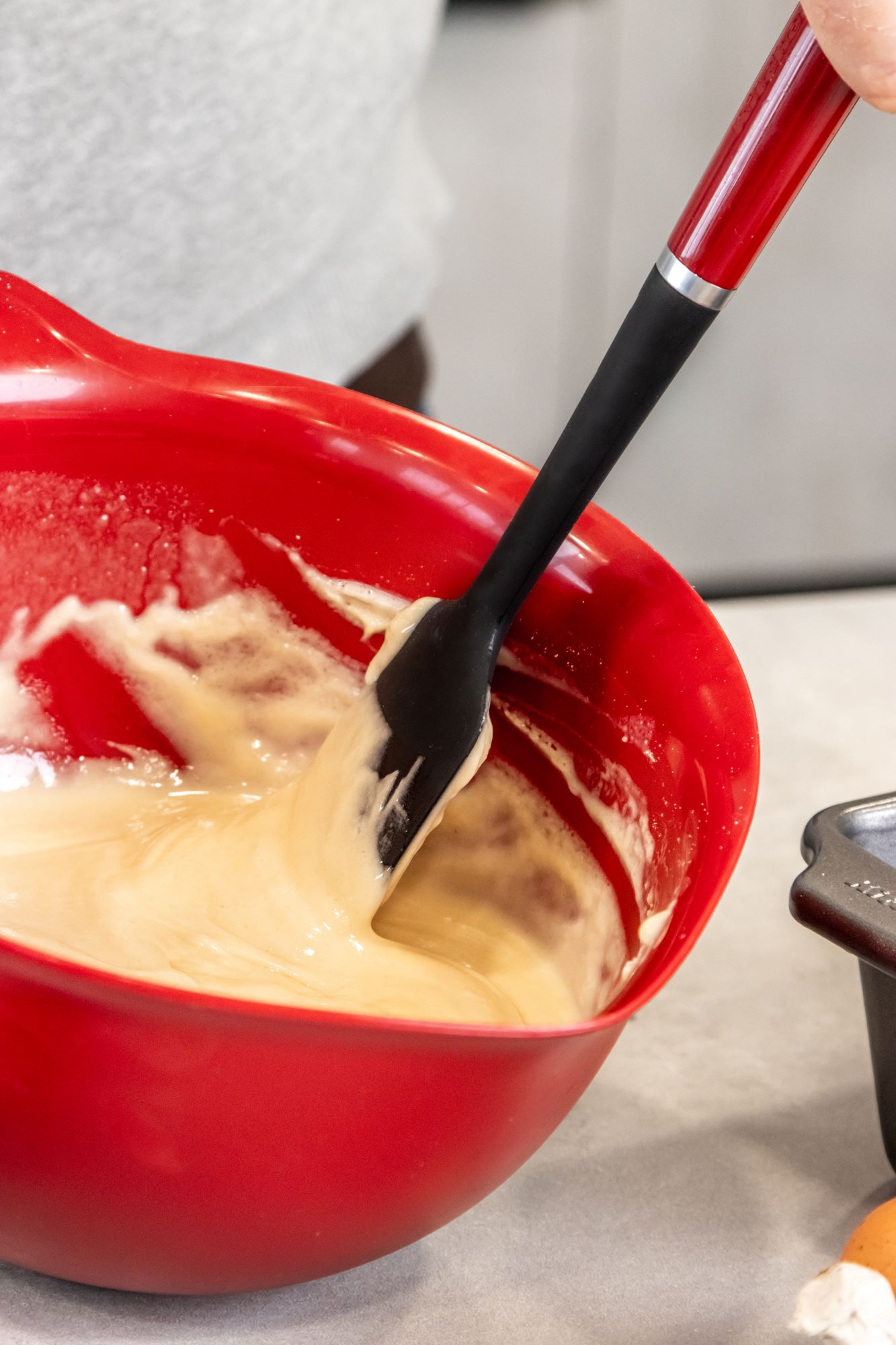 Силиконовата шпатула KitchenAid е идеална за изглаждане на тестото и изстъргването му от купи за смесване или други контейнери за смесване.