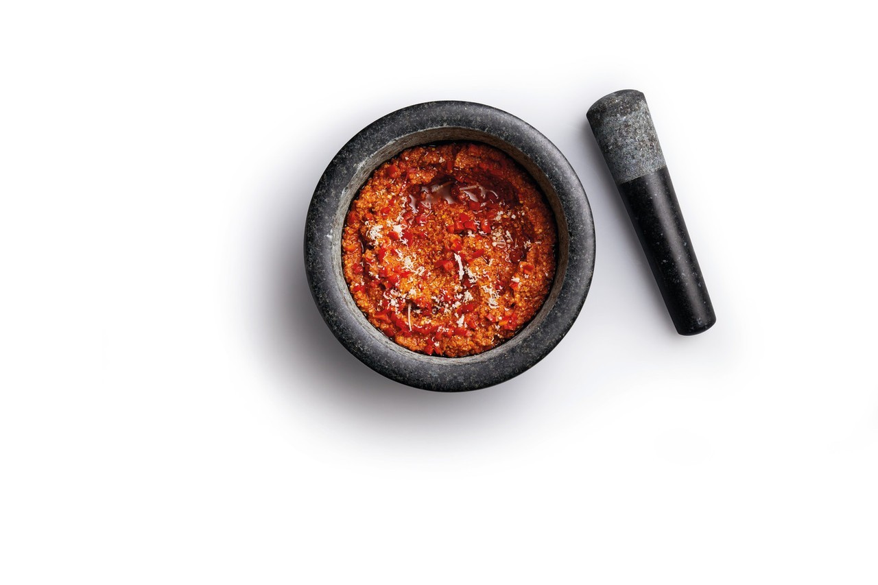 Хаванче и чукало, производство на Kitchen Craft, изработено от мрамор с размери 13 × 20 см. Има гланцирана външна част и грапава вътрешност за лесно смилане на съставките. Освен това теглото на мрамора осигурява по-добра стабилност по време на употреба.
