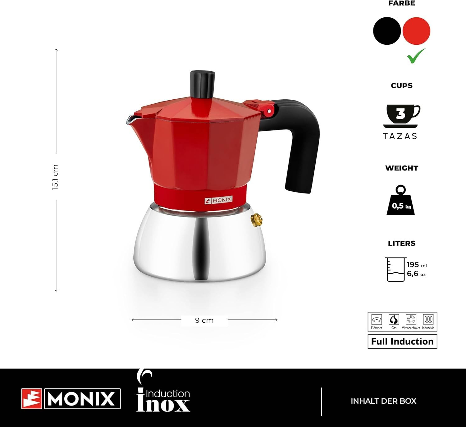 Кафемашина Moka, произведена от Monix, с вместимост 195 ml (3 чаши).