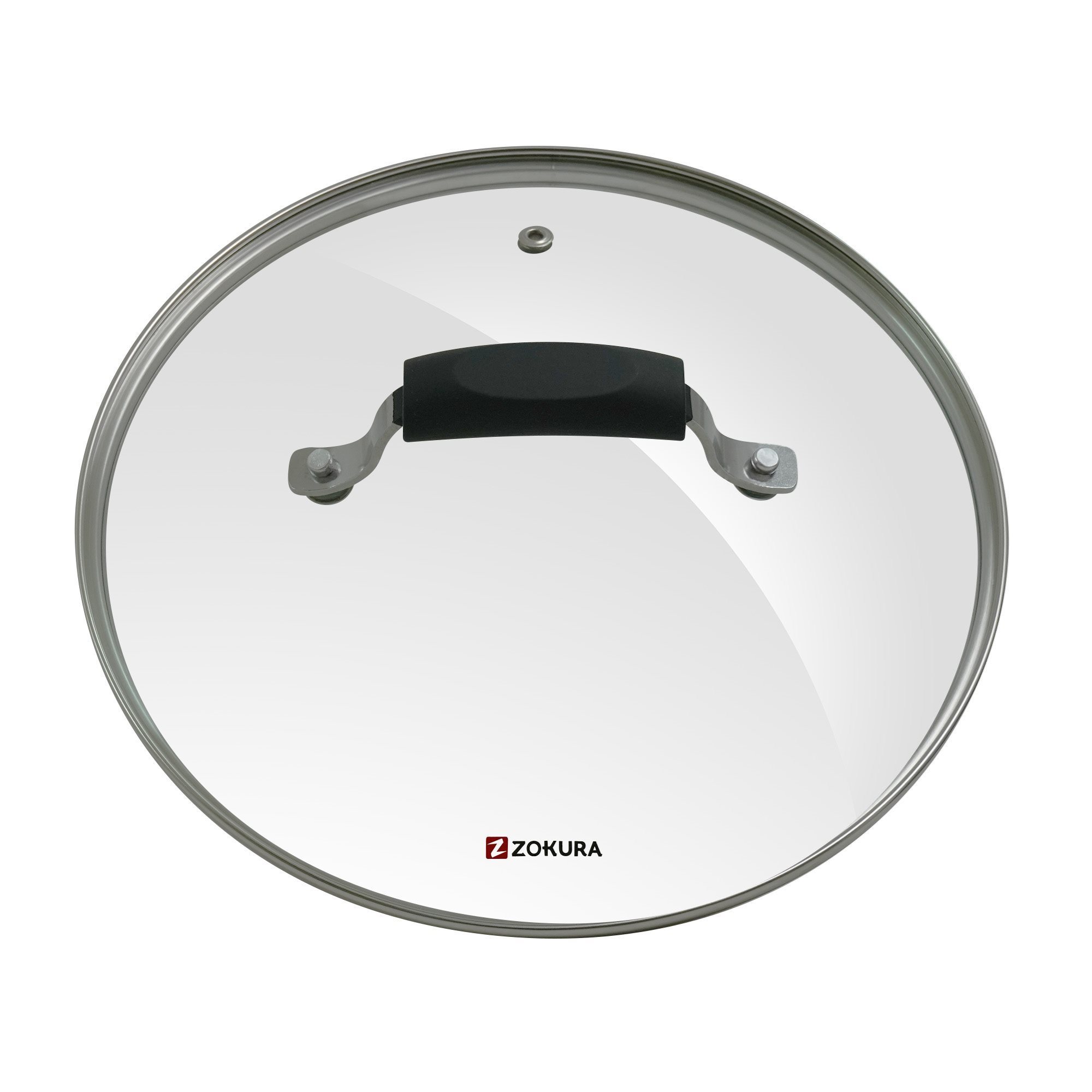 Капак, изработен от стъкло, диаметър 24 см, с отвор от неръждаема стомана за изпускане на пара, марка Zokura