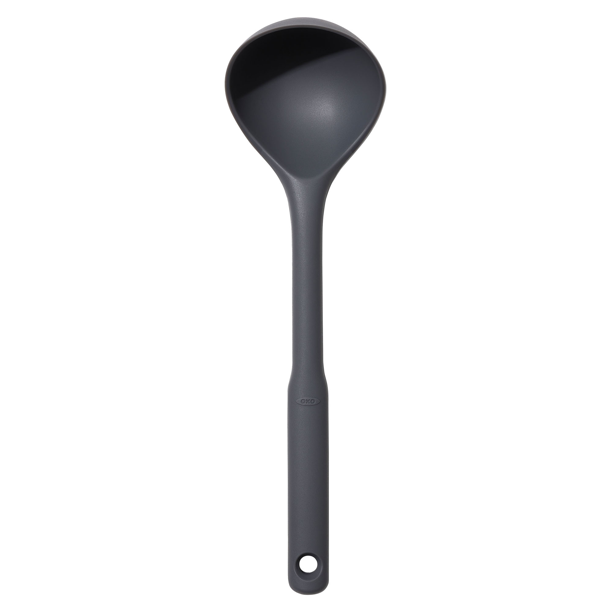 Черпакът OXO Good Grips, изработен от силикон, е перфектният кухненски инструмент за сервиране на супи или сосове благодарение на специалния си дизайн.