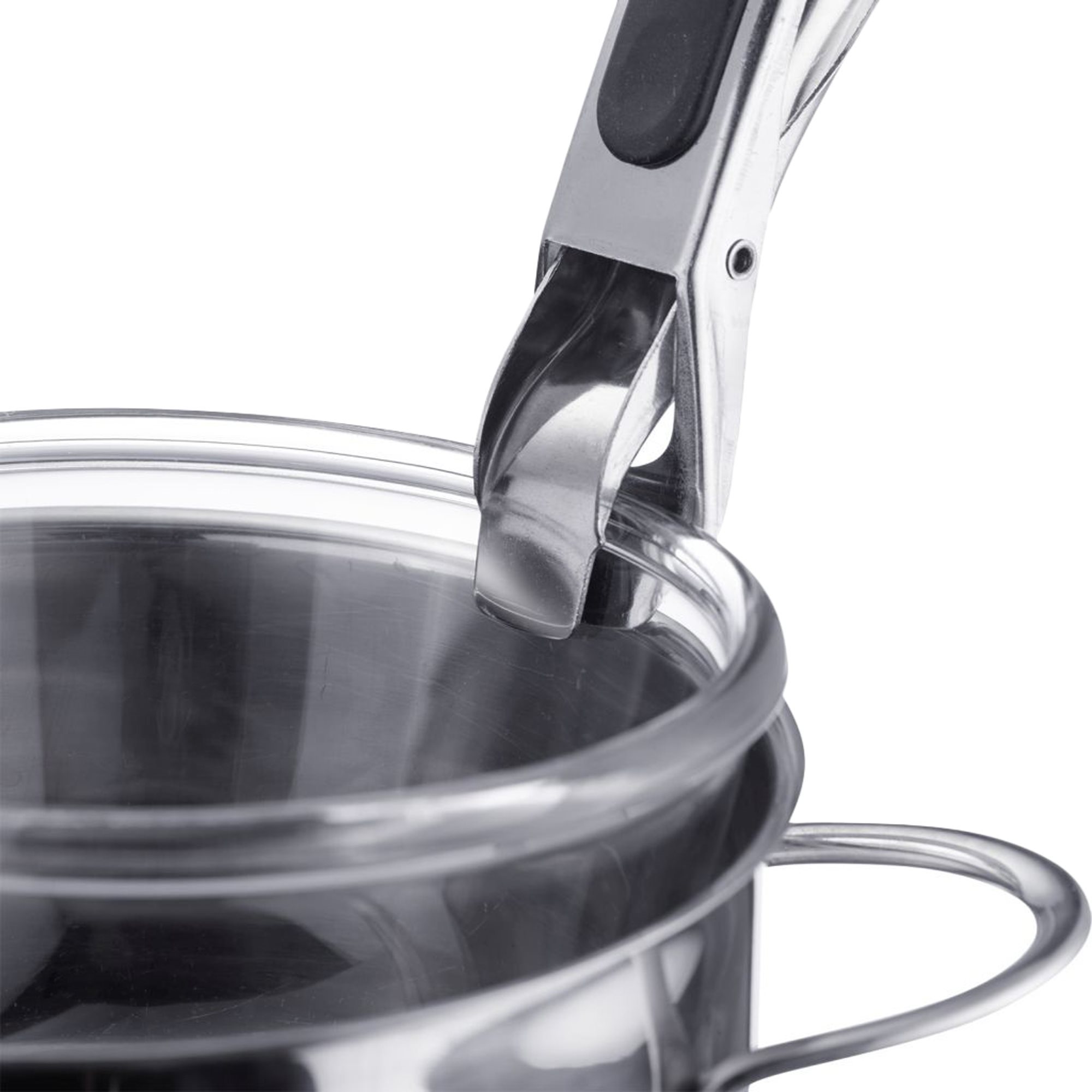 Дръжката на продукта е с противоплъзгаща част, която предпазва ръцете от изгаряне, а захващащата повърхност е със силиконово покритие, което предпазва съдовете от надраскване.