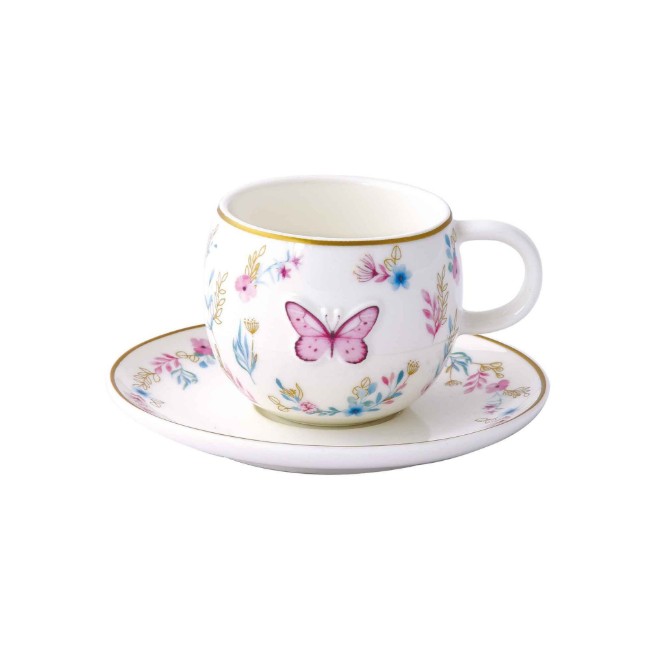 Комплект от 2 чаши за кафе с чинийки, изработени от порцелан с релефен дизайн, от колекцията "Fancy Garden" с индивидуален капацитет 120 мл, произведени от Nuova R2S.