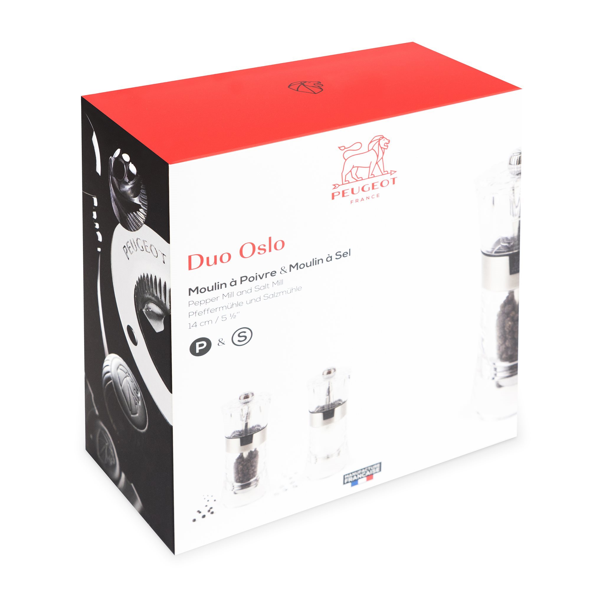 Комплект 2 броя мелнички за сол и пипер "Oslo" с височина 14 см от пластмаса и неръждаема стомана марка Peugeot