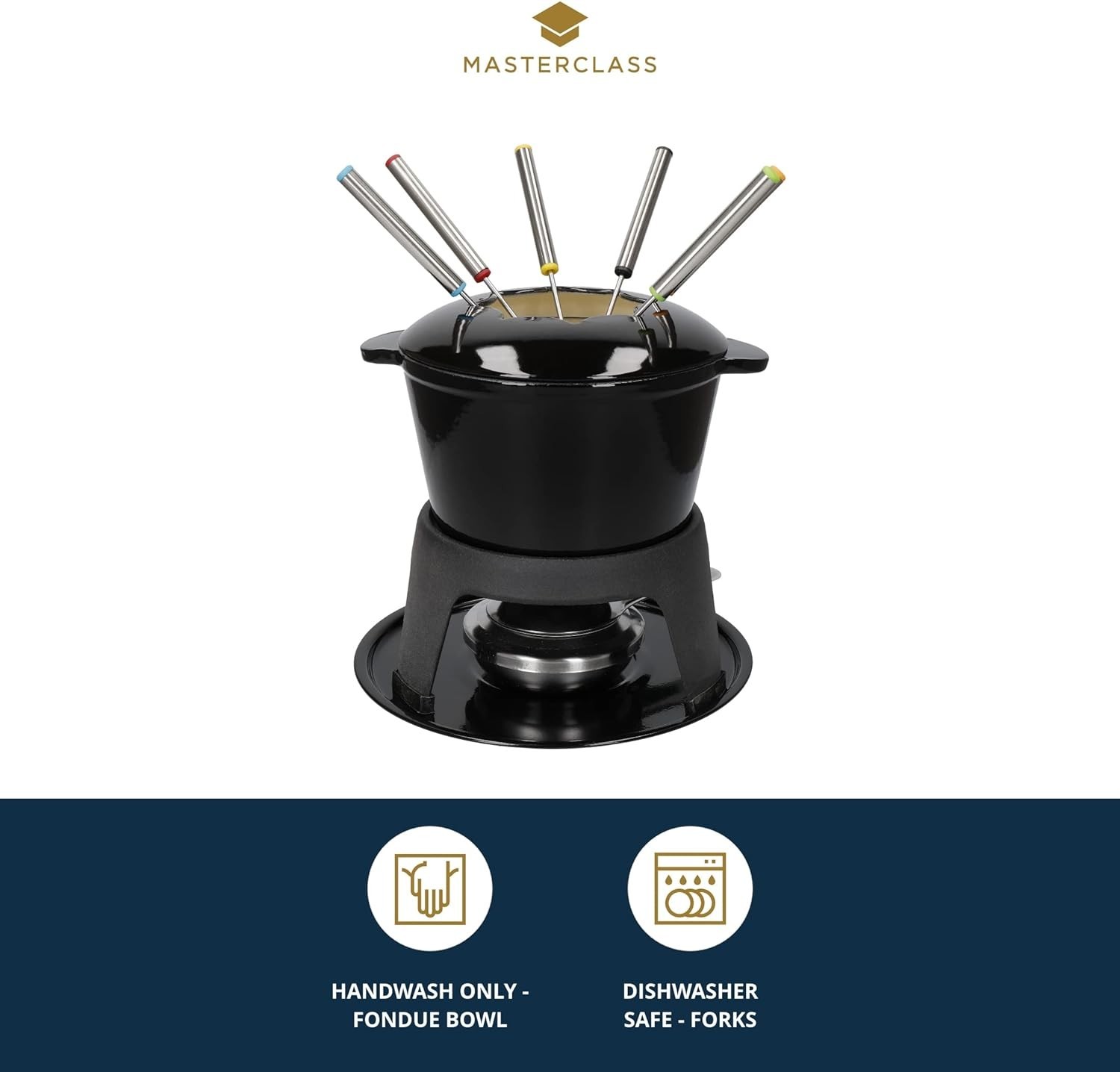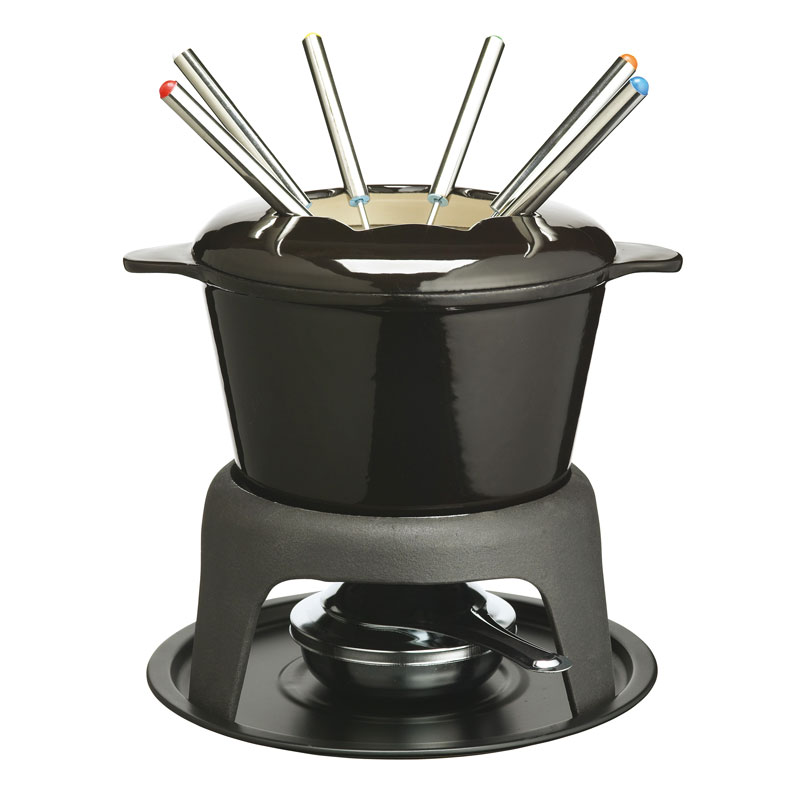 8 -парче фондю комплект, марка Kitchen Craft, направени от чугун, идеален да се готви фондю различни храни, като сирене, шоколад и дори месо.