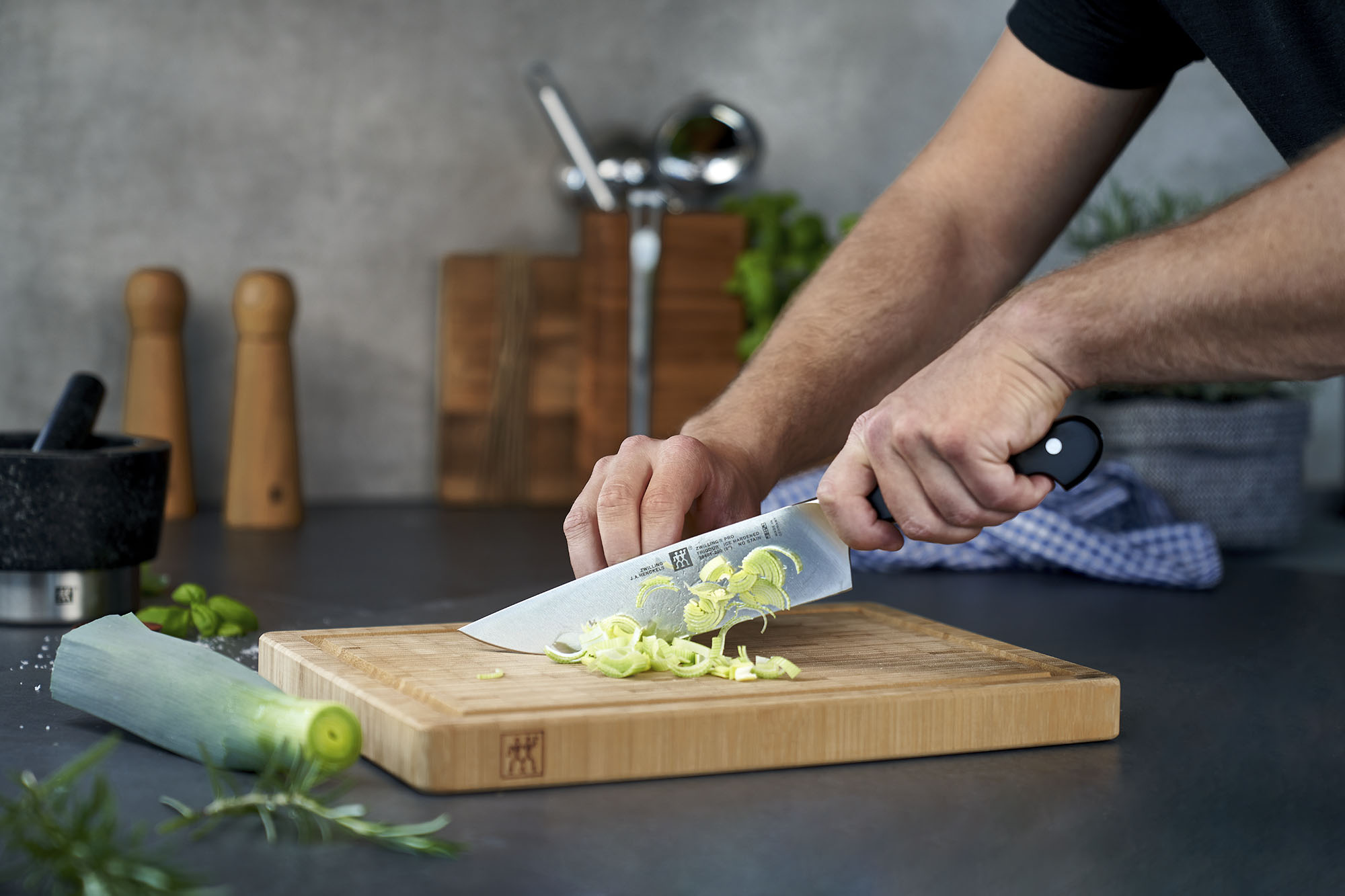 Комплект от 3 кухненски ножа, произведени от ZWILLING Pro, от съществено значение за всяка кухня. Остриетата са изработени от специална неръждаема стомана, устойчива на корозия и удари.