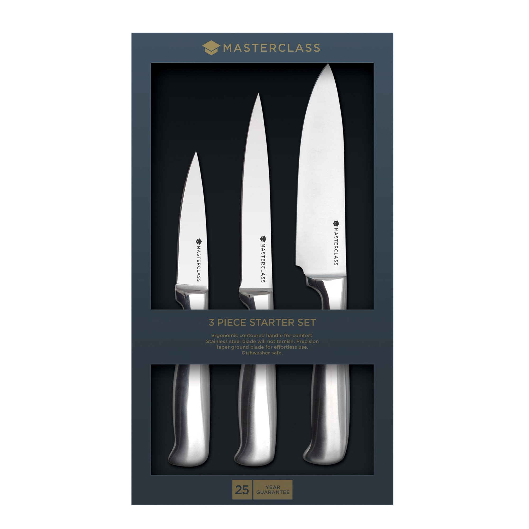 Комплект кухненски ножове, 3 части, от Kitchen Craft, изработен от висококачествена въглеродна стомана.