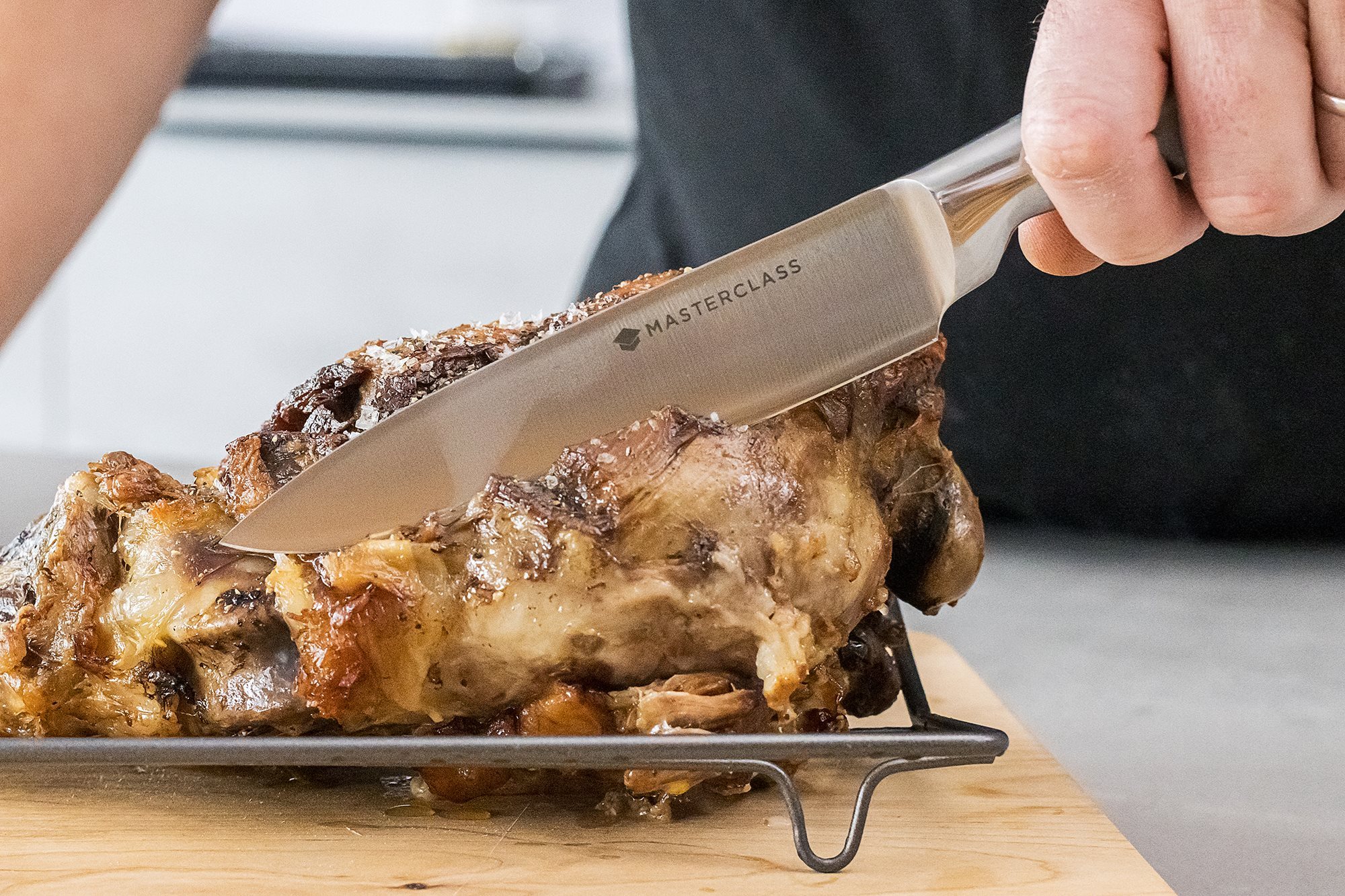 Ножовете имат ергономични дръжки, изработени от сатенирана неръждаема стомана.