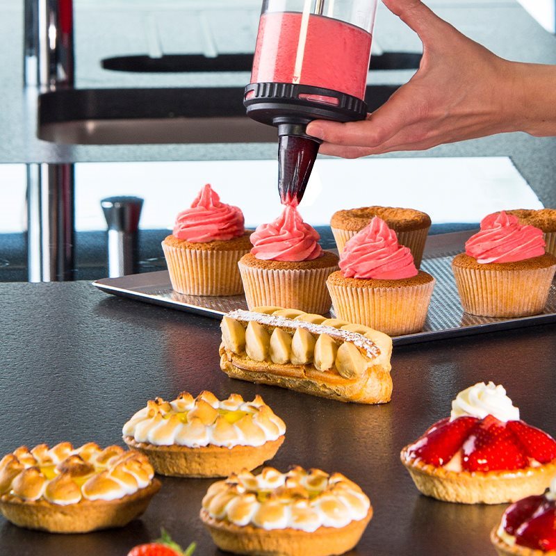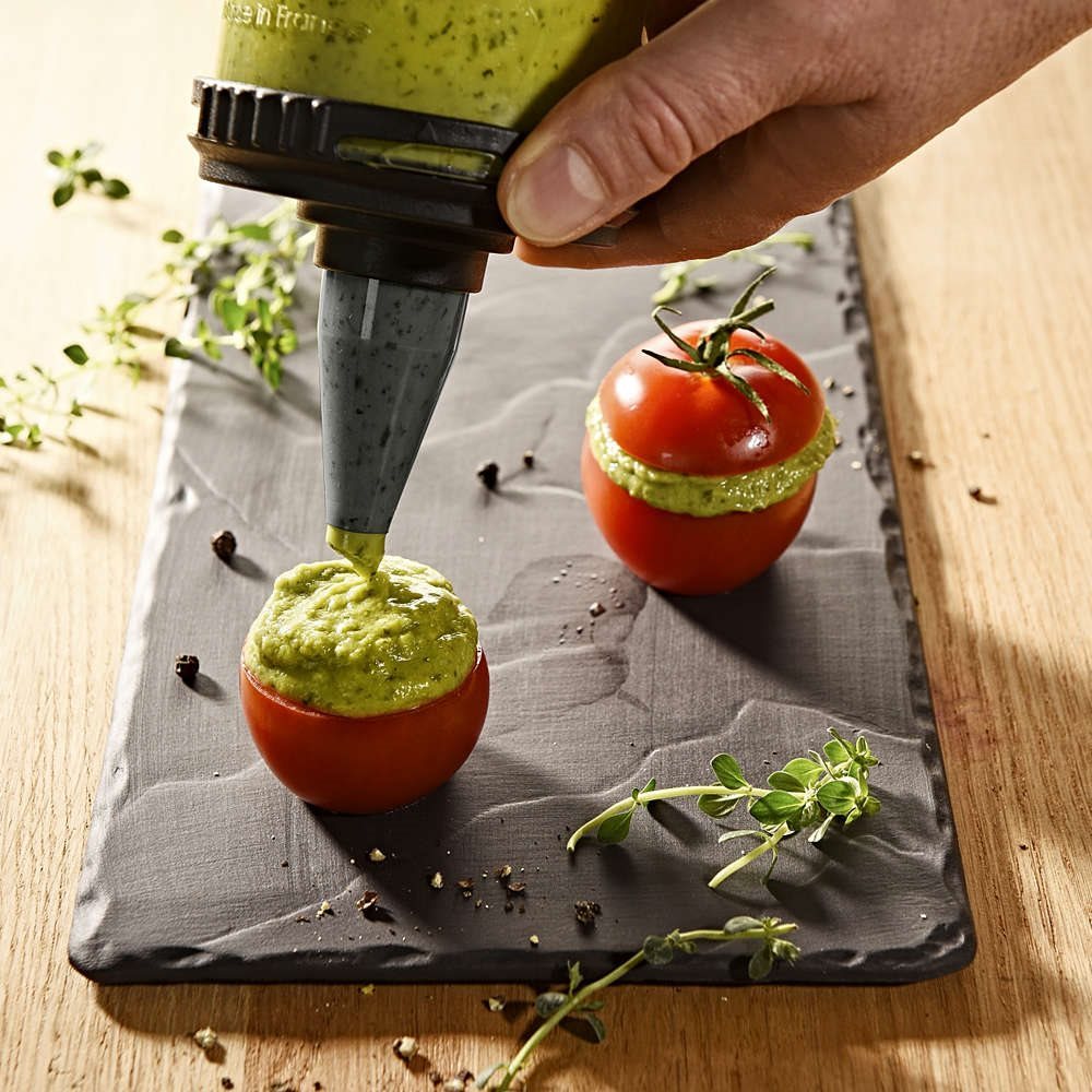 Комплектът е идеален за пълнене на зеленчуци или торти, за украса на чинии, както и за украса на торти, сладкиши и за приготвяне на ружа.