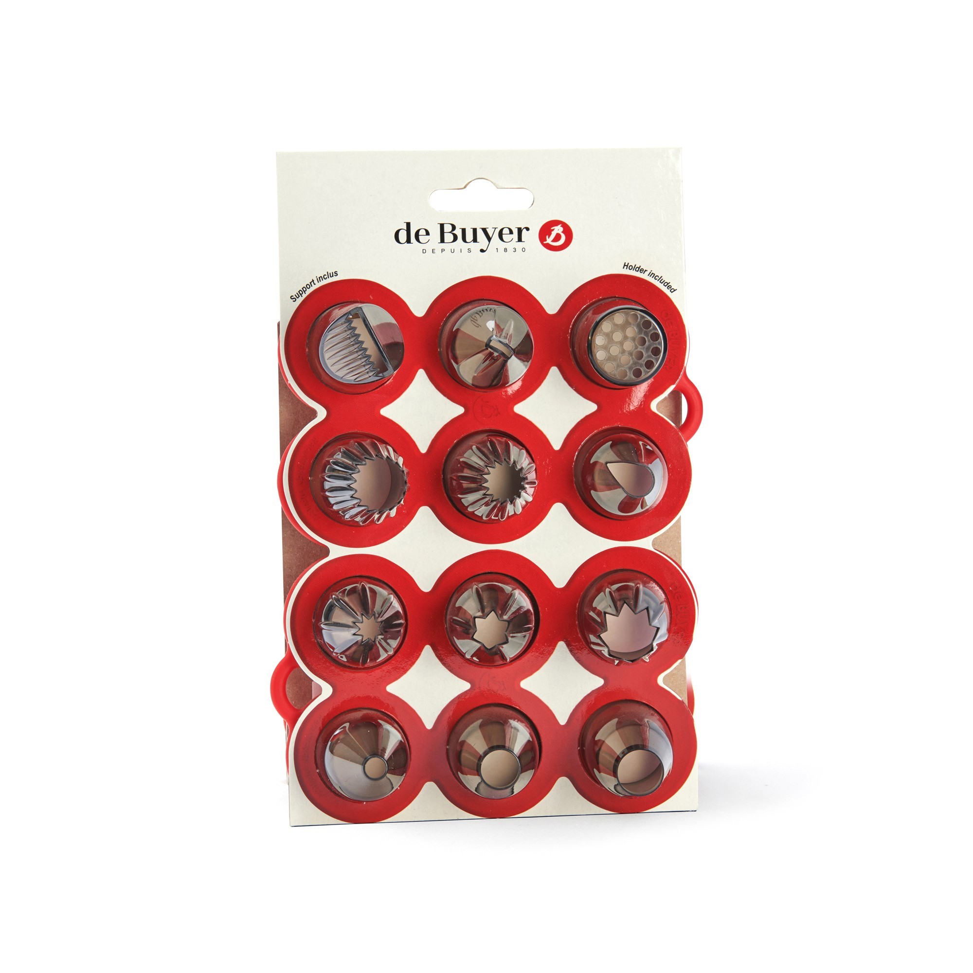Комплект от 12 сладкарски дюзи за декорация, изработени от тритан, марката de Buyer, всички предназначени за професионална употреба.