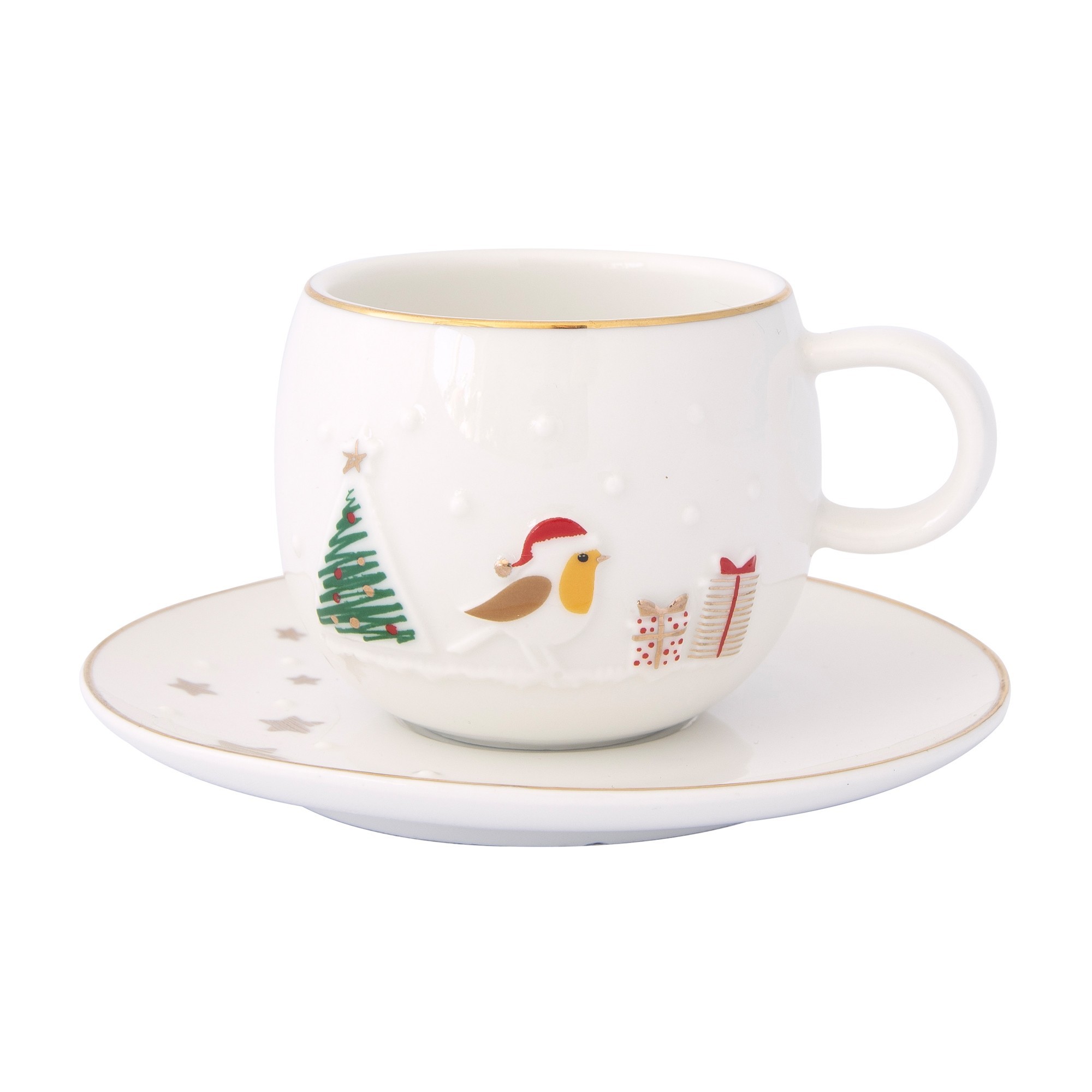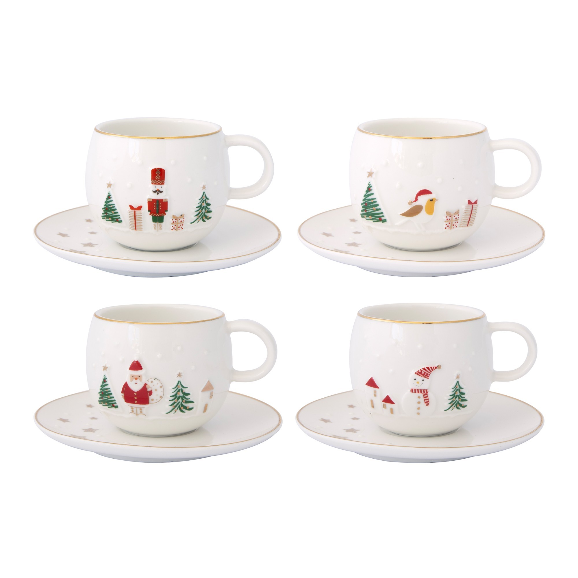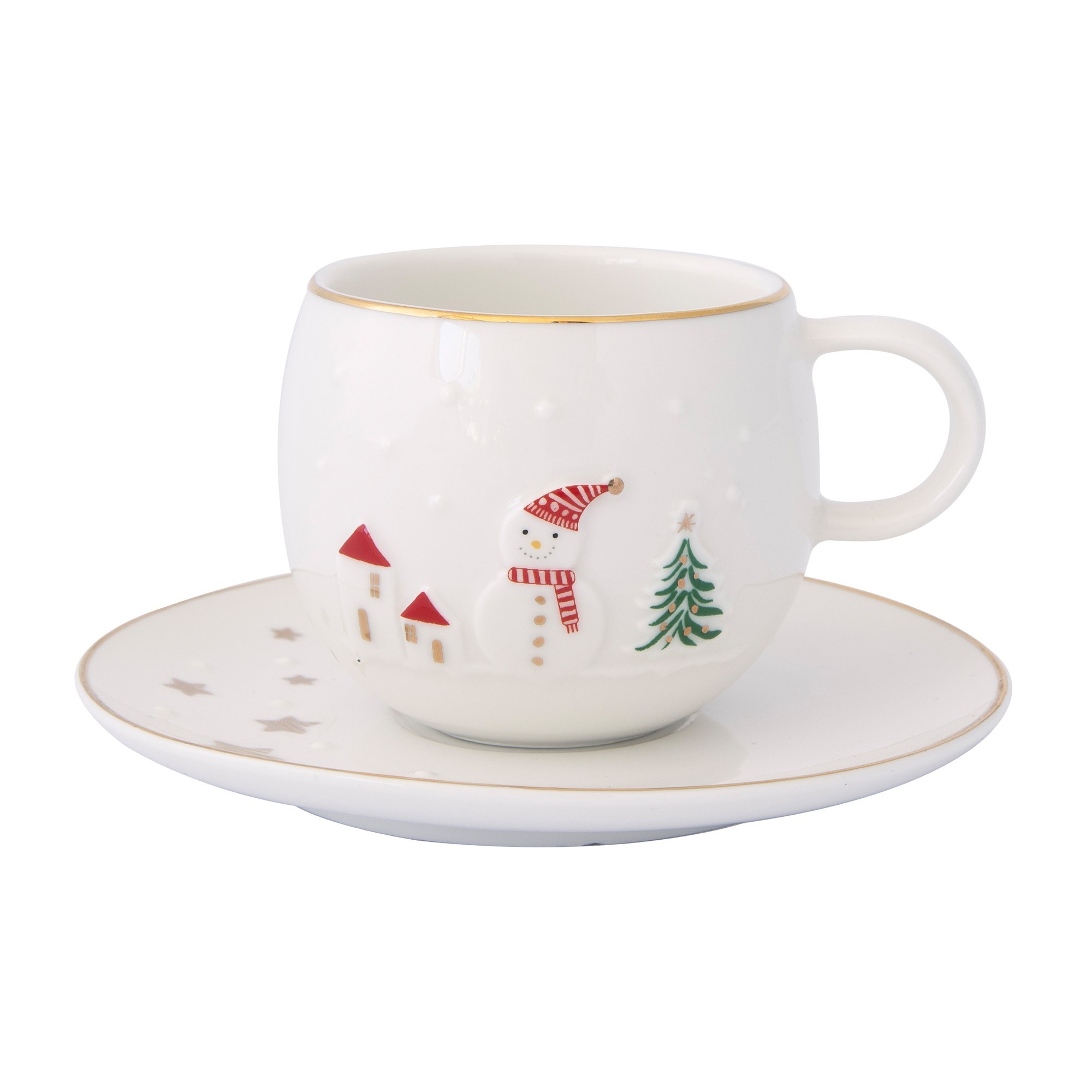 Чашите се отличават с релефен дизайн със сезонни мотиви, внасяйки магията на Коледа във вашия дом.