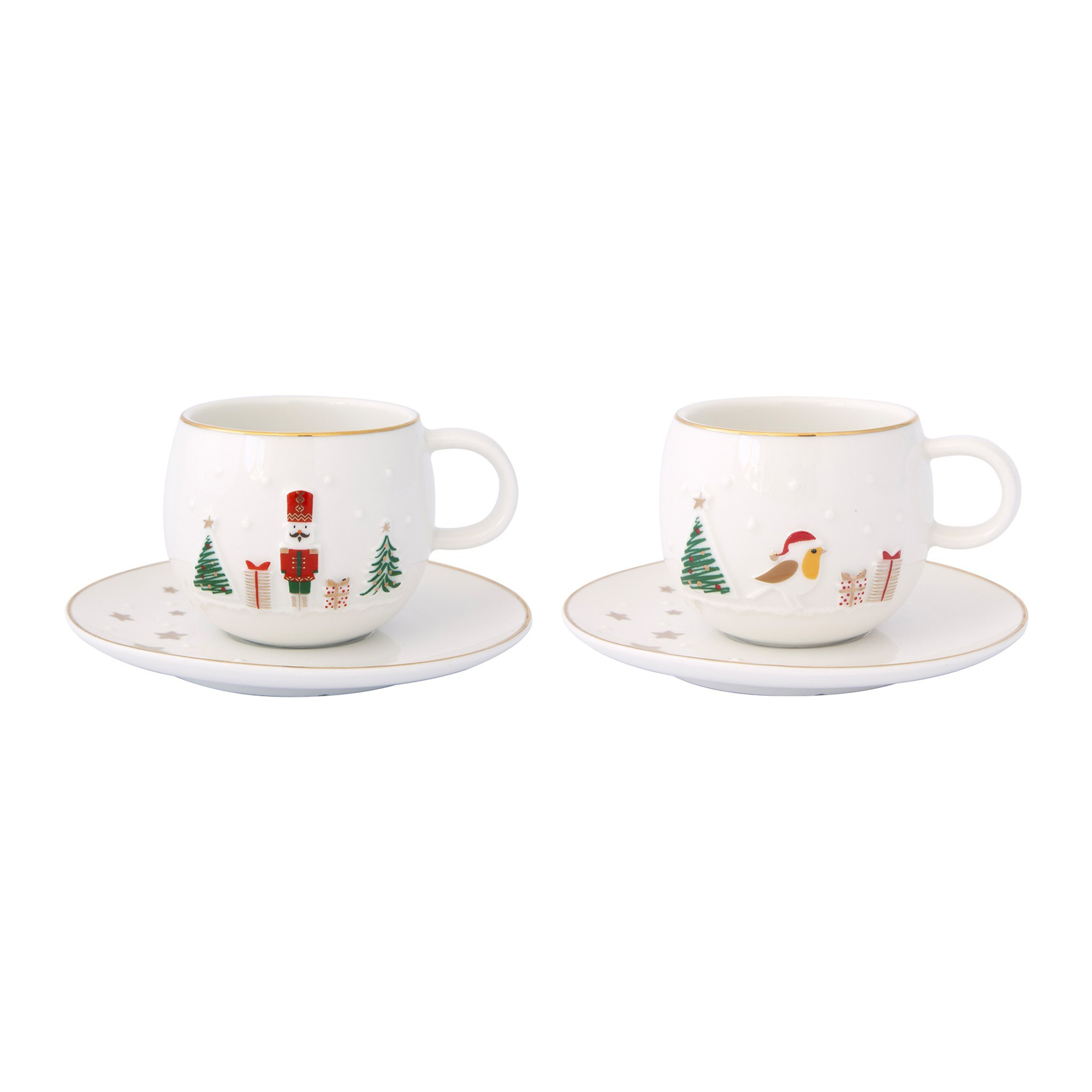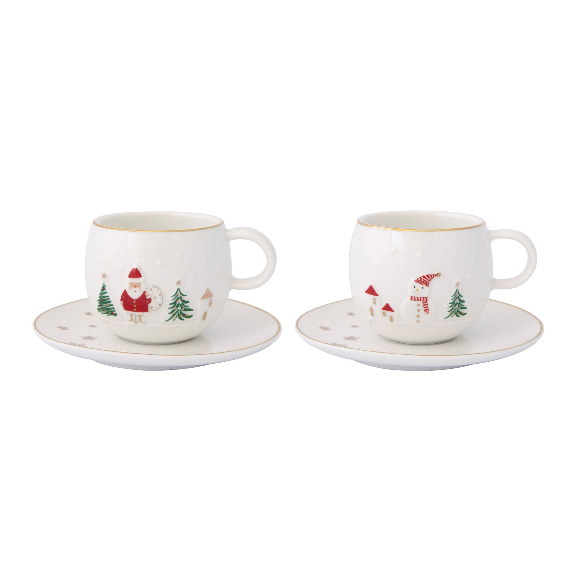 Комплект от 2 чаши с чинийки, изработени от порцелан, с индивидуален капацитет 120 мл, от колекцията "Let it Snow" , произведена от Nuova R2S.