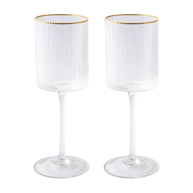 Тези прозрачни чаши за вино се отличават с плисиран дизайн със златист ръб и имат индивидуален капацитет от 300 мл.