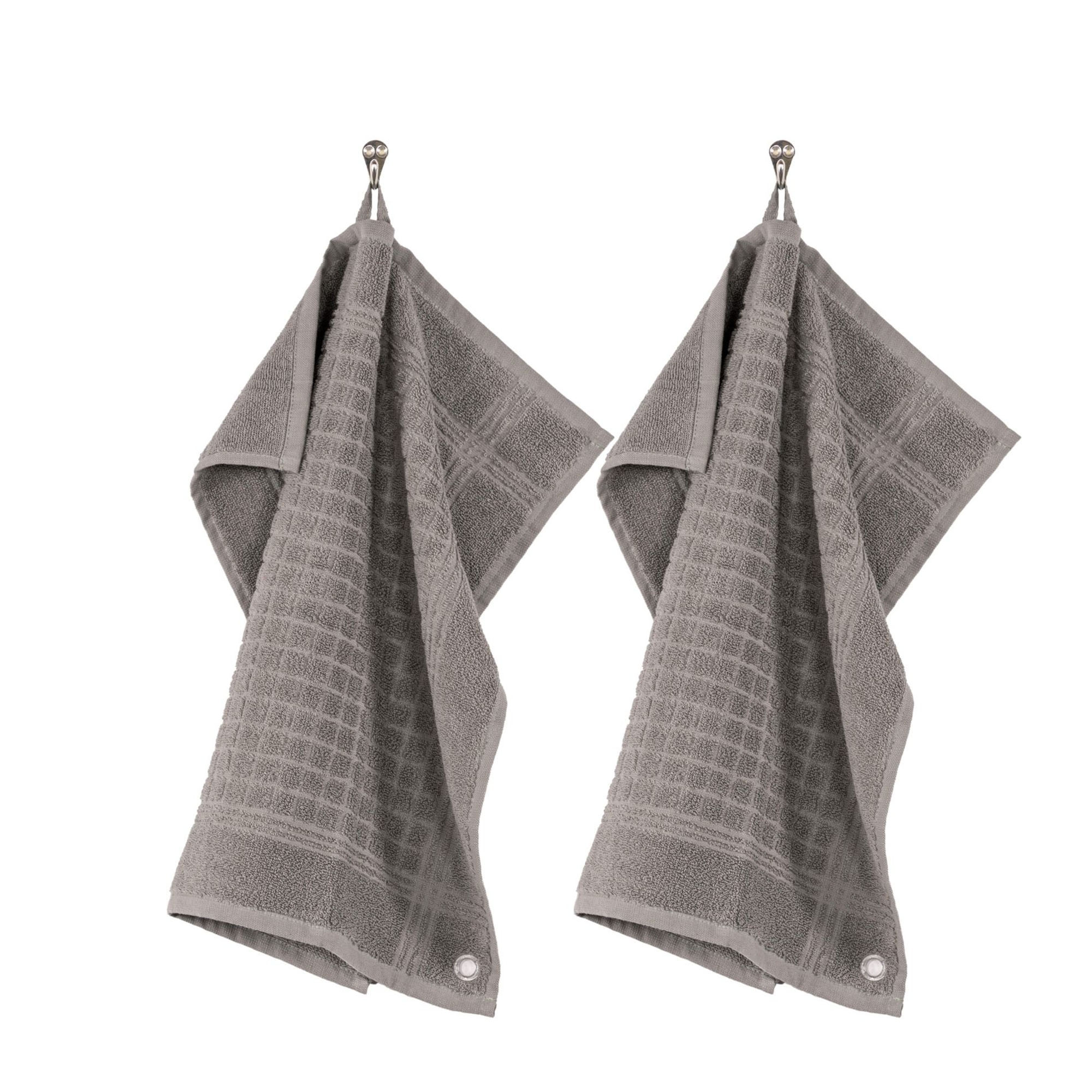 Кърпите осигуряват добро абсорбиране, изсъхват бързо и се усещат приятно на допир. Те са оборудвани с висяща примка и здрави ръбове. Платът има бродиран квадратен мотив.