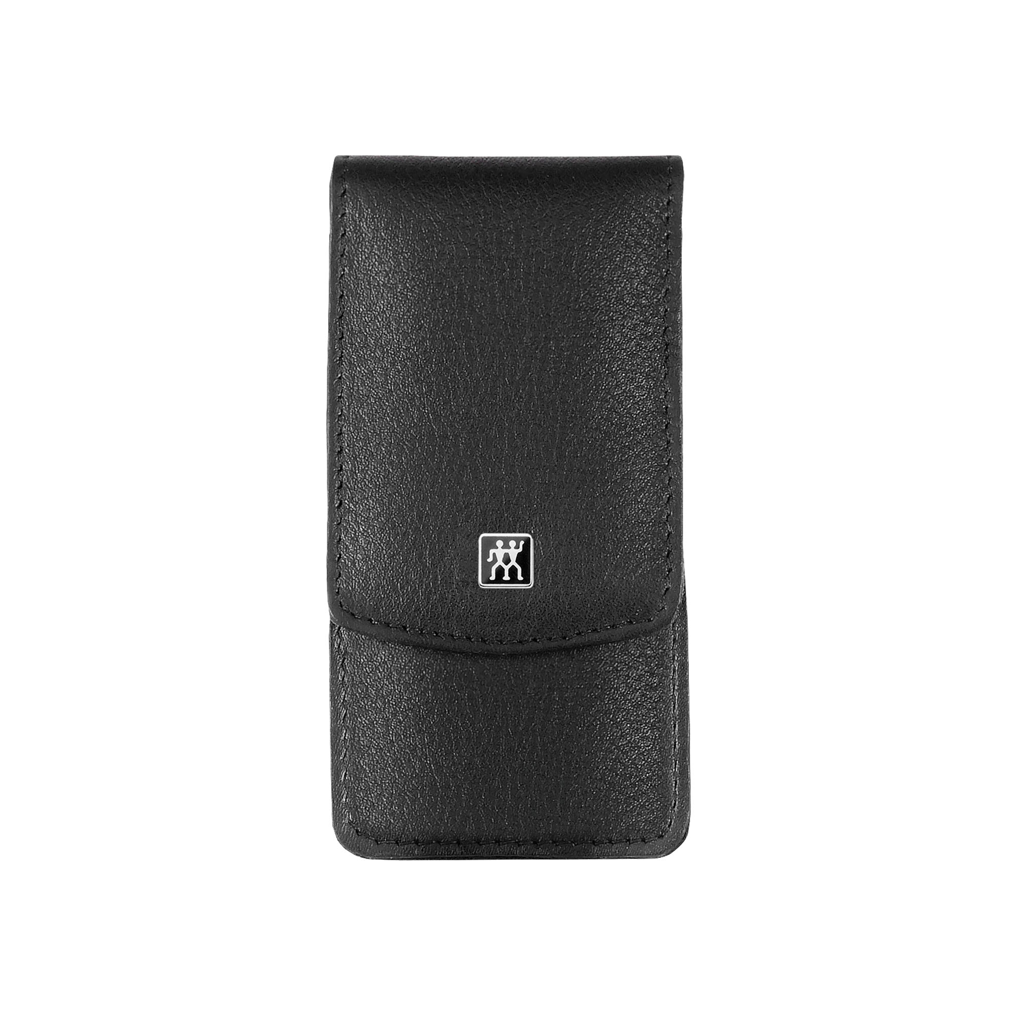- Черен калъф от естествена кожа с копче за закопчаване.