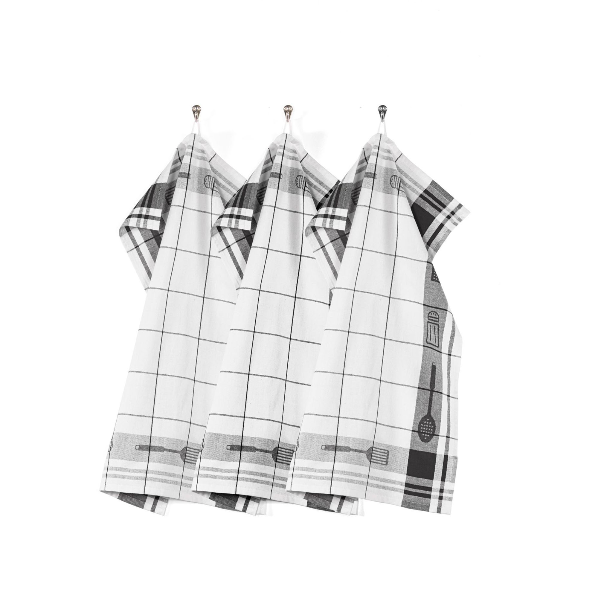 Комплект от 3 кухненски кърпи, памук, 50 x 70 см, "Pharao", черно - Tiseco